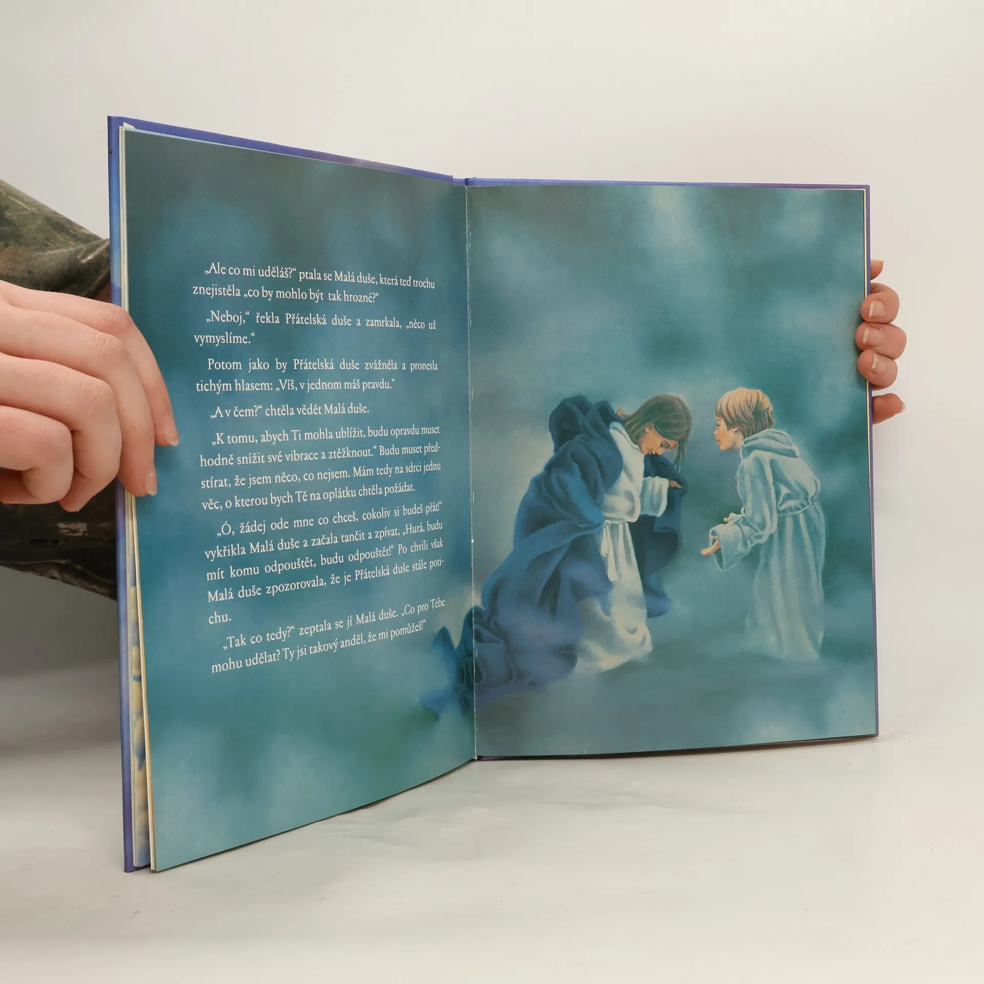 Kniha Hovory s Bohem pro děti s barevnými ilustracemi. Malá duše a Slunce je prosté a působivé vyprávění pro děti, ve kterém budou objevovat Boha, kterého mohou milovat, protože Bůh je láska – a všechny malé dušičky jsou jeho částečkami. Možná, že i rodiče u této knihy znovu objeví, kým skutečně jsou… Bylo nebylo, žila jednou jedna Malá duše. A tato Malá duše o sobě věděla, že je Světlo, jedno z milionů, trilionů Světel, která dohromady tvoří vesmír. Jenže naše Malá duše chtěla také prožít jaké to je být Světlem. A Bůh řekl, že chce-li Malá duše vědět, co je Světlo, musí nejprve poznat Tmu. Protože jak bychom poznali co je nahoře bez toho, co je dole, horké, kdyby nebylo studené a rychlé bez pomalého? Malá duše pochopila, že chce-li poznat, čím doopravdy je, musí poznat také pravý opak. „Je to veliký dar,“ řekl Bůh, „protože bez něj bys nemohla poznat, jaké věci jsou.“ A tak se Malá duše vydala na dobrodružnou cestu. Její příběh je možná hodně podobný tomu, které na planetě Zemi prožíváme my všichni.
