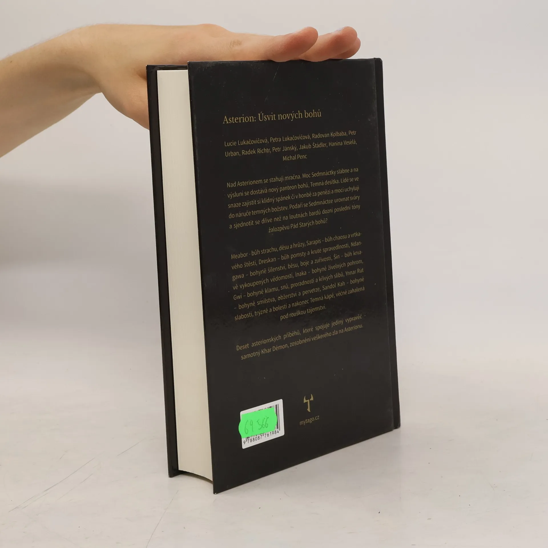 V knize naleznete jedenáct napínavých asterionských příběhů, které spojuje jediný vypravěč - samotný Khar Démon, zosobnění veškerého zla na Asterionu. Nad Asterionem se stahují mračna. Moc Sedmnáctky slábne a na výsluní se dostává nový panteon bohů, Temná desítka. Lidé se ve snaze zajistit si klidný spánek či v honbě za penězi a mocí uchylují do náruče temných božstev. Podaří se Sedmnáctce urovnat sváry a sjednotit se dříve než na loutnách bardů dozní poslední tóny žalozpěvu Pád Starých bohů? S jakými bohy se v knize setkáte? Meabor - bůh strachu, děsu a hrůzy, Sarapis - bůh chaosu a vrtkavého štěstí, Dreskan - bůh pomsty a kruté spravedlnosti, Ndangawa - bohyně šílenství, běsu, boje a zuřivosti, Šin - bůh krvavě vykoupených vědomostí, Inaka - bohyně živelných pohrom, Gwi - bohyně klamu, snů, proradnosti a křivých slibů, Ynnar Rút - bohyně smilstva, obžerství a perverze, Sandol Kah - bohyně slabosti, trýzně a bolesti a nakonec Temná kápě, věčně zahalená pod rouškou tajemství. Seznam příběhů Petra Lukačovičová: Ta šťastná Petr Urban: Prkna, co znamenají sněť Lucie Lukačovičová: Maska a zrcadlo Radovan Kolbaba: Vyšší spravedlnost Hanina Veselá: Sivý Tamarýn Jakub Štádler: Vůně strachu Michal Penc: Z hlubin slabosti a beznaděje Petr Urban: Beze jména Lucie Lukačovičová: Oko štíra Radek Richtr: Sbírka zvadlých sněženek Radovan Kolbaba: Brána v temnotě