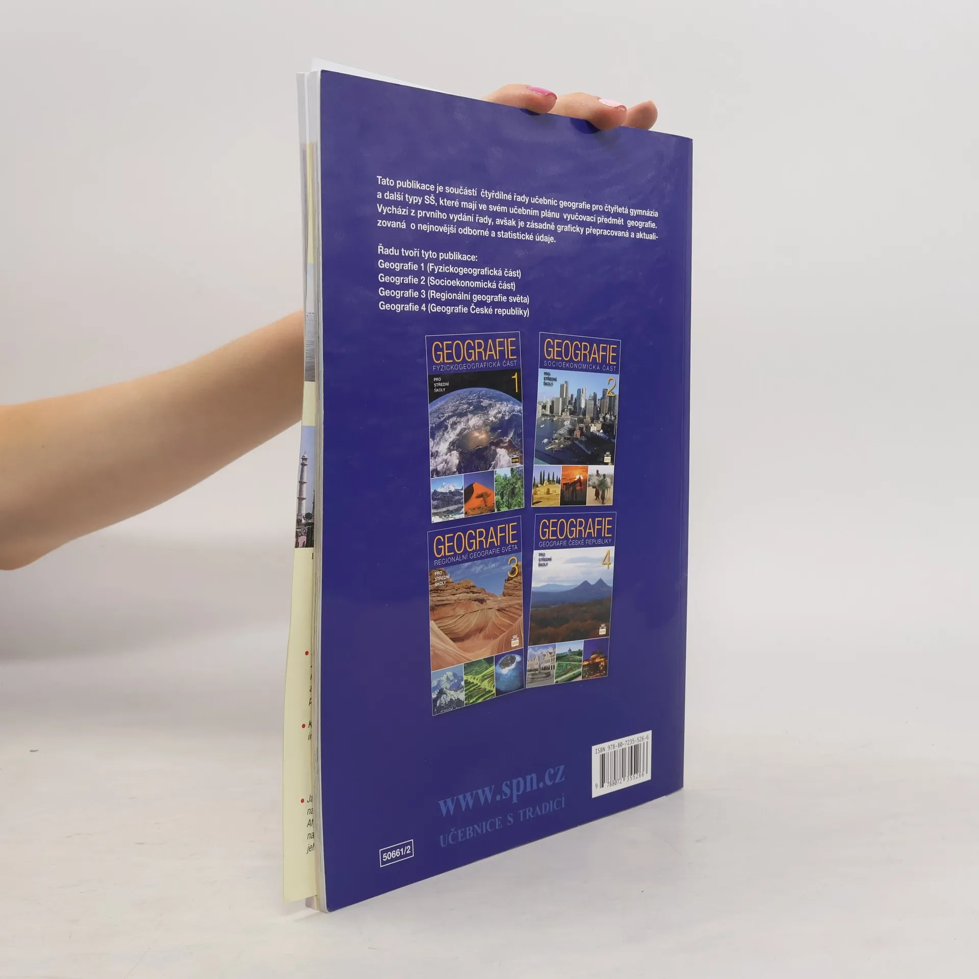 Tato publikace je součástí čtyřdílné řady učebnic geografie pro čtyřletá gymnázia a další typy SŠ, které mají ve svém učebním plánu vyučovací předmět geografie. Vychází z prvního vydání řady, avšak je zásadně graficky přepracovaná a aktualizovaná o nejnovější odborné a statistické údaje.