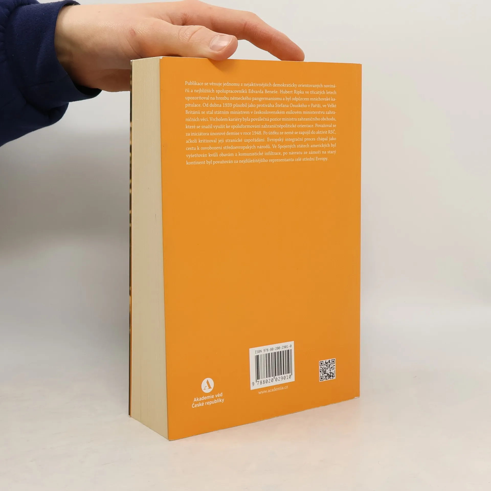 Publikace se věnuje jednomu z nejaktivnějších demokraticky orientovaných novinářů a nejbližších spolupracovníků Edvarda Beneše. Hubert Ripka ve třicátých letech upozorňoval na hrozbu německého pangermanismu a byl odpůrcem mnichovské kapitulace. Od dubna 1939 působil jako protiváha Štefana Osuského v Paříži, ve Velké Británii se stal státním ministrem v československém exilovém ministerstvu zahraničních věcí. Vrcholem kariéry byla poválečná pozice ministra zahraničního obchodu, které se snažil využít ke spoluformování zahraničněpolitické orientace. Považoval se za iniciátora únorové demise v roce 1948. Po útěku ze země se zapojil do aktivit RSČ, ačkoli kritizoval její stranické uspořádání. Evropský integrační proces chápal jako cestu k osvobození středoevropských národů. Ve Spojených státech amerických byl vyšetřován kvůli obavám z komunistické infiltrace, po návratu ze zámoří na starý kontinent byl považován za nejdůležitějšího reprezentanta celé střední Evropy.