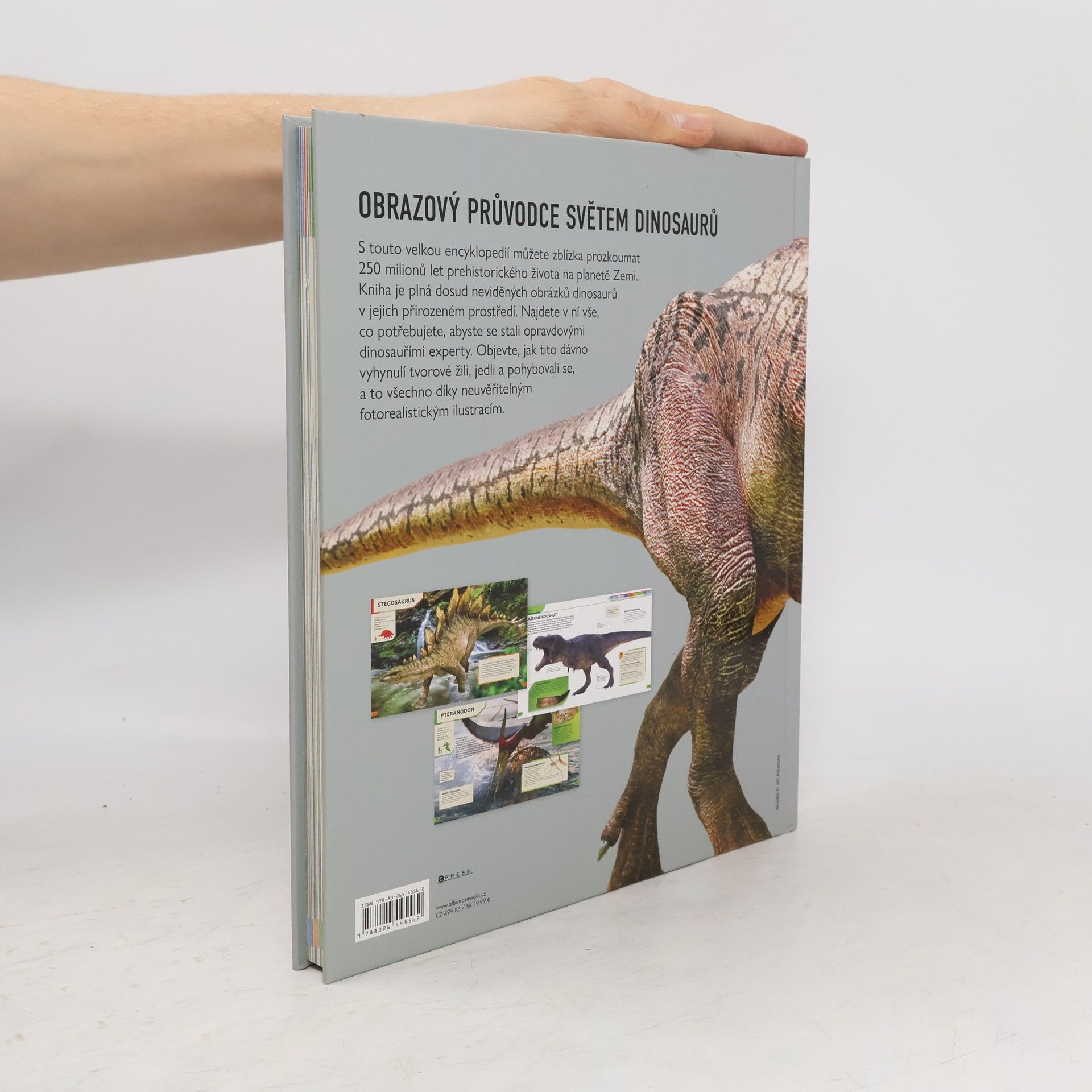 Úžasný obrazový průvodce světem dinosaurů S touto velkou encyklopedií můžete zblízka prozkoumat 250 milionů let prehistorického života na planetě Zemi. Kniha je plná dosud neviděných obrázků dinosaurů v jejich přirozeném prostředí. Najdete v ní vše, co potřebujete, abyste se stali opravdovými dinosauřími experty. Objevte, jak tito dávno vyhynulí tvorové žili, jedli a pohybovali se, a to všechno díky neuvěřitelným fotorealistickým ilustracím.