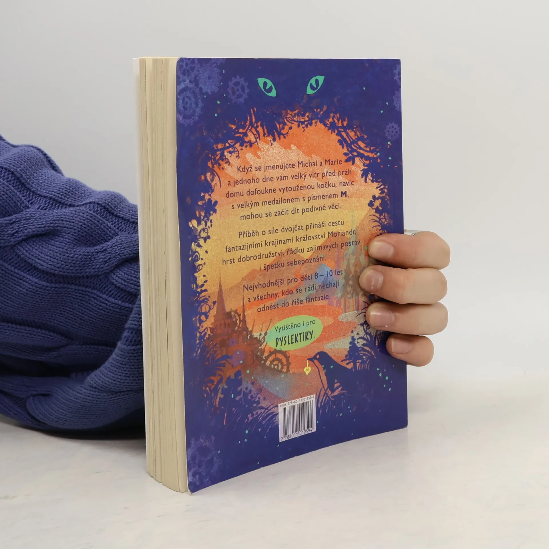 Když se jmenujete Michal a Marie a jednoho dne vám velký vítr před práh domu dofoukne vytouženou kočku, navíc s velkým medailonem s písmenem M, mohou se začít dít podivné věci. Příběh o síle dvojčat přináší cestu fantazijními krajinami království Moriandr, hrst dobrodružství, řádku zajímavých postav i špetku sebepoznání. Nejvhodnější pro děti 8-10 let a všechny, kdo se rádi nechají odnést do říše fantazie. Vysázeno a vytištěno s ohledem na dyslektiky.