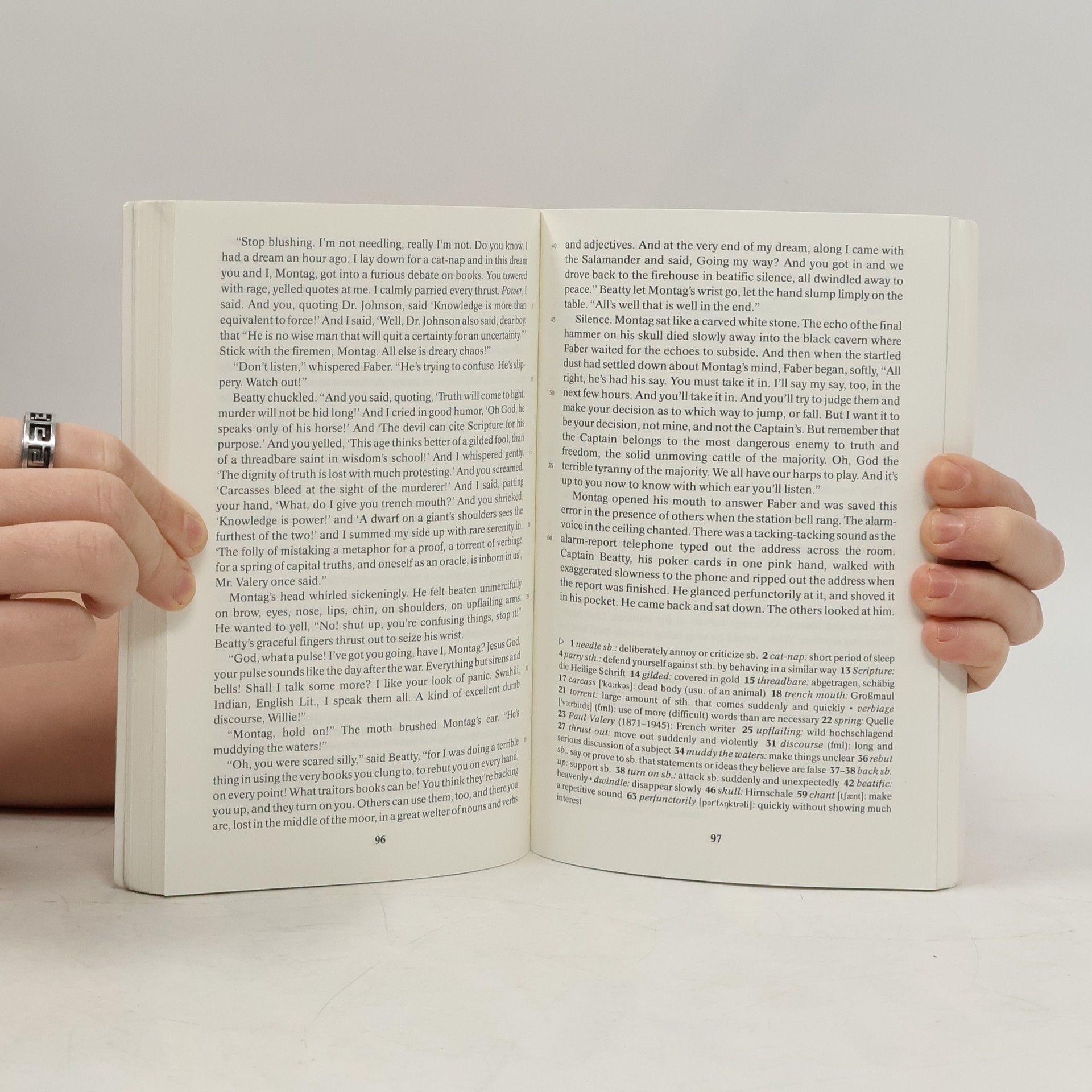 Guy Montag is a fireman, his job is to burn books, which are forbidden.