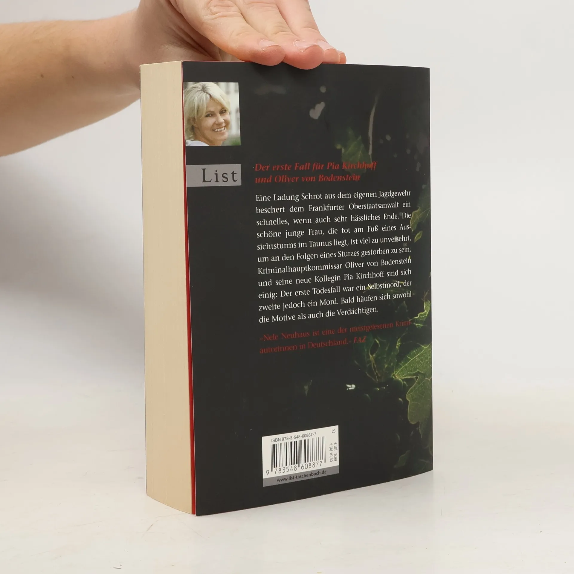 Der erste Fall für Pia Kirchhoff und Oliver von Bodenstein Eine Ladung Schrot aus dem eigenen Jagdgewehr beschert dem Frankfurter Oberstaatsanwalt ein schnelles, wenn auch sehr hässliches Ende. Die schöne junge Frau, die tot am Fuß eines Aussichtsturms im Taunus liegt, ist viel zu unversehrt, um an den Folgen eines Sturzes gestorben zu sein. Kriminalhauptkommissar Oliver von Bodenstein und seine neue Kollegin Pia Kirchhoff sind sich einig: Der erste Todesfall war ein Selbstmord, der zweite jedoch ein Mord. Bald häufen sich sowohl die Motive als auch die Verdächtigen. Doch was hat den Staatsanwalt in den Tod getrieben?