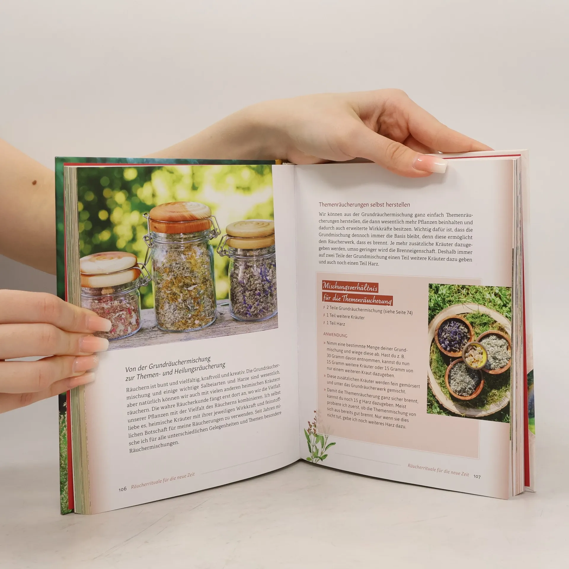 Räuchern, so natürlich wie möglich und in dem Bewusstsein, dass der Rauch heimischer Pflanzen und Harze sowohl auf körperlicher als auch auf seelischer Ebene heilsam wirkt. Beim Räuchern werden neben den Inhalts- und Wirkstoffen der Kräuter immer auch feinstoffliche Kräfte frei. Die Autorin stellt dazu ihre selbst entwickelte Methode des „Räucherns ohne Kohle“ vor und beschreibt, wie man eigene Räuchermischungen herstellen kann. Zudem werden über 20 Räucherrituale und -zeremonien beschrieben, mit denen man sich selbst, aber auch den Wandel der Erde unterstützen kann. Von Wetterräucherungen über Naturwesenräucherungen bis hin zu großen Räucherritualen, die man in der Gruppe draußen in der Natur durchführt, sind es Anleitungen für einen neuen Umgang mit der Natur und Mutter Erde.
