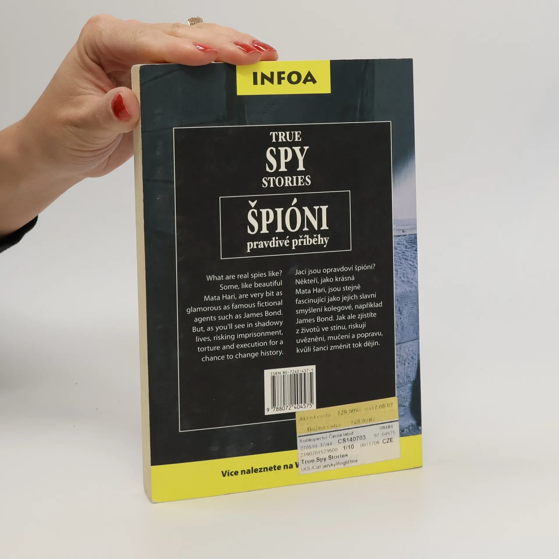 Zrcadlový text vám přináší napínavý příběh jak v českém tak anglickém jazyce – na levé straně knihy je původní text, na pravé jeho překlad do češtiny. Ideální čtení nejen na dovolenou, u kterého se pobavíte, ale navíc se procvičíte v angličtině! Pravdivé příběhy Vás zavedou do míst, kde jde o boj o přežití mezi špiony. Kniha je navíc doplněna užitečnými poznámkami pod čarou, které čtenáře upozorní na důležitá anglická slovní spojení. Doporučujeme všem mírně pokročilým k procvičení pochopení anglického textu.