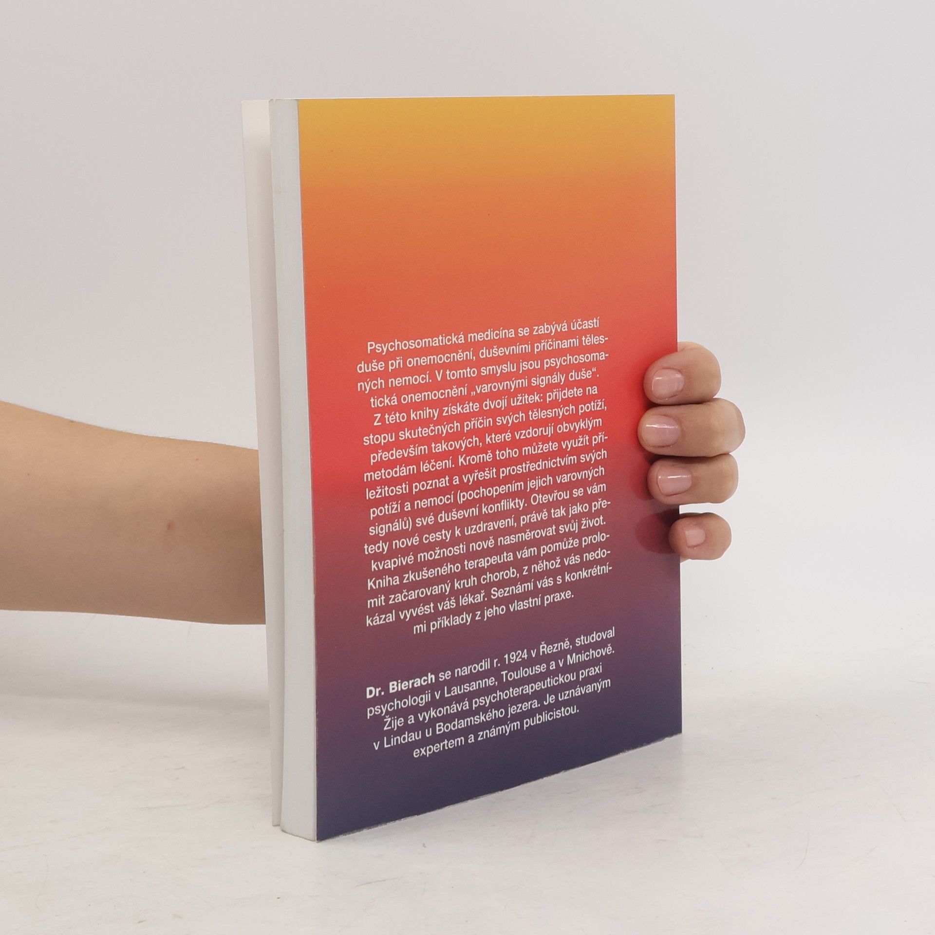Psychosomatická medicína se zabývá účastí duše při onemocnění, duševními příčinami tělesných nemocí. V tomto smyslu jsou psychosomatická onemocnění "varovnými signály duše". Z této knihy získáte dvojí užitek: přijdete na stopu skutečných příčin svých tělesných potíží, především takových, které vzdorují obvyklým metodám léčení. Kromě toho můžete využít příležitosti poznat a vyřešit prostřednictvím svých potíží a nemocí své duševní konflikty.