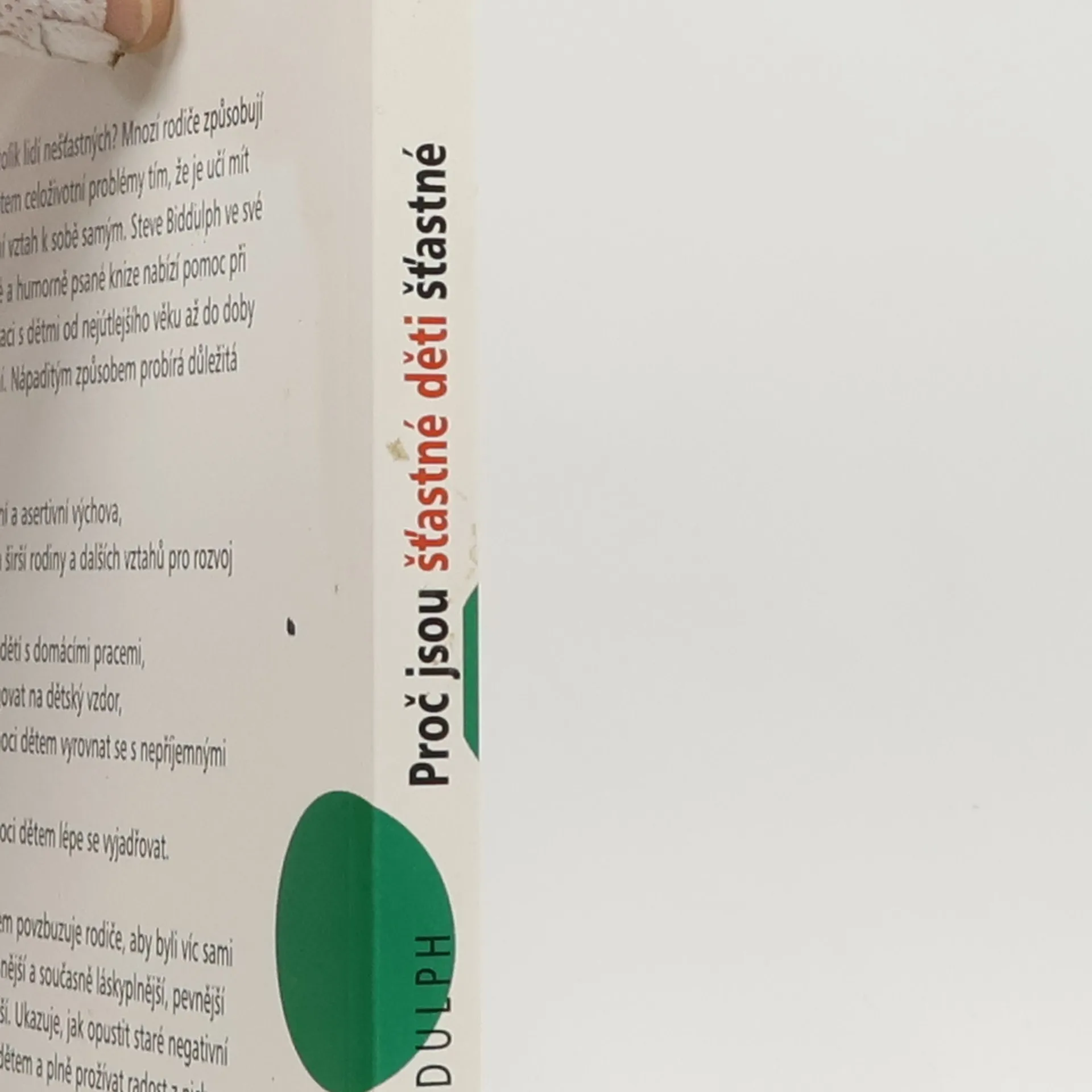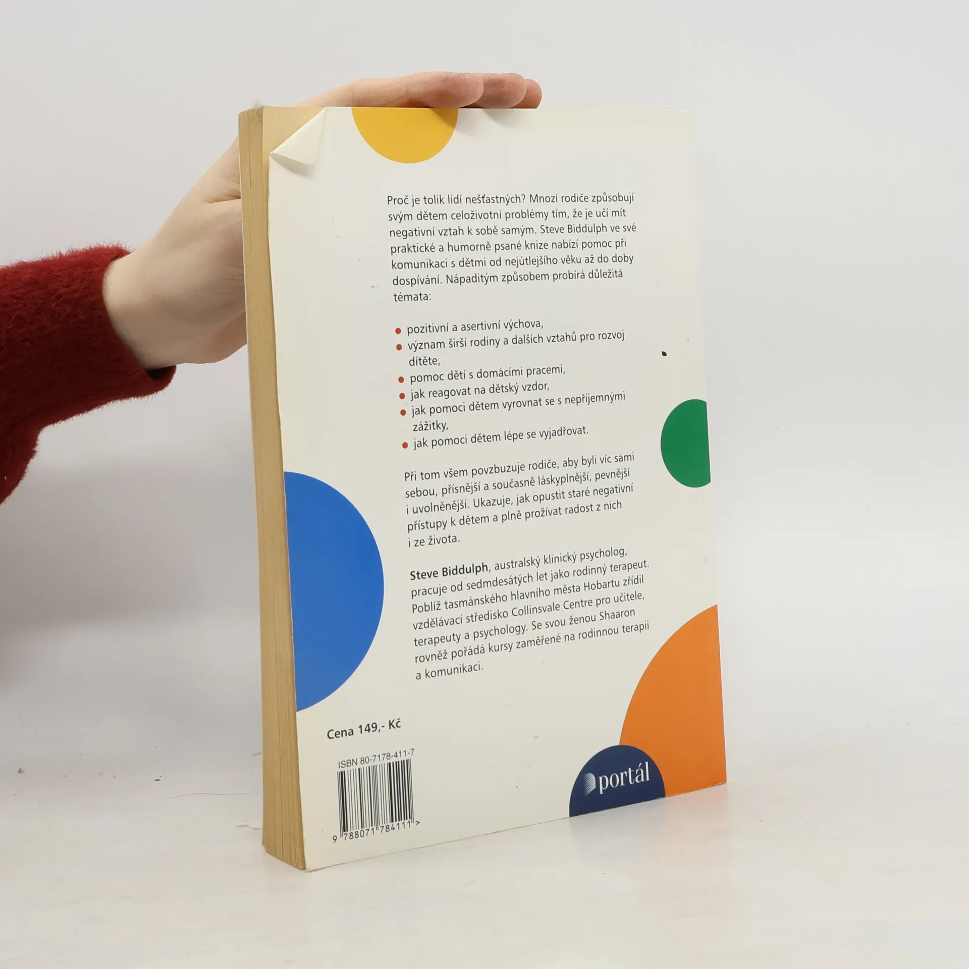 Proč je tolik lidí nešťastných? Mnozí rodiče způsobují svým dětem celoživotní problémy tím, že je učí mít negativní vztah k sobě samým. Steve Biddulph ve své praktické a humorně napsané knize nabízí pomoc při komunikaci s dětmi od nejútlejšího věku až do doby dospívání. Nápaditým způsobem probírá důležitá témata: pozitivní a asertivní výchova, význam širší rodiny a dalších vztahů pro rozvoj dítěte pomoc dětí s domácími prácemi, jak reagovat na dětský vzdor, jak pomoci dětem vyrovnat se s nepříjemnými zážitky, jak pomoci dětem lépe se vyjadřovat. Při tom všem povzbuzuje rodiče, aby byli víc sami sebou, přísnější a současně láskyplnější, pevnější i uvolněnější. Ukazuje, jak opustit staré negativní přístupy k dětem a plně prožívat radost z nich i ze života.