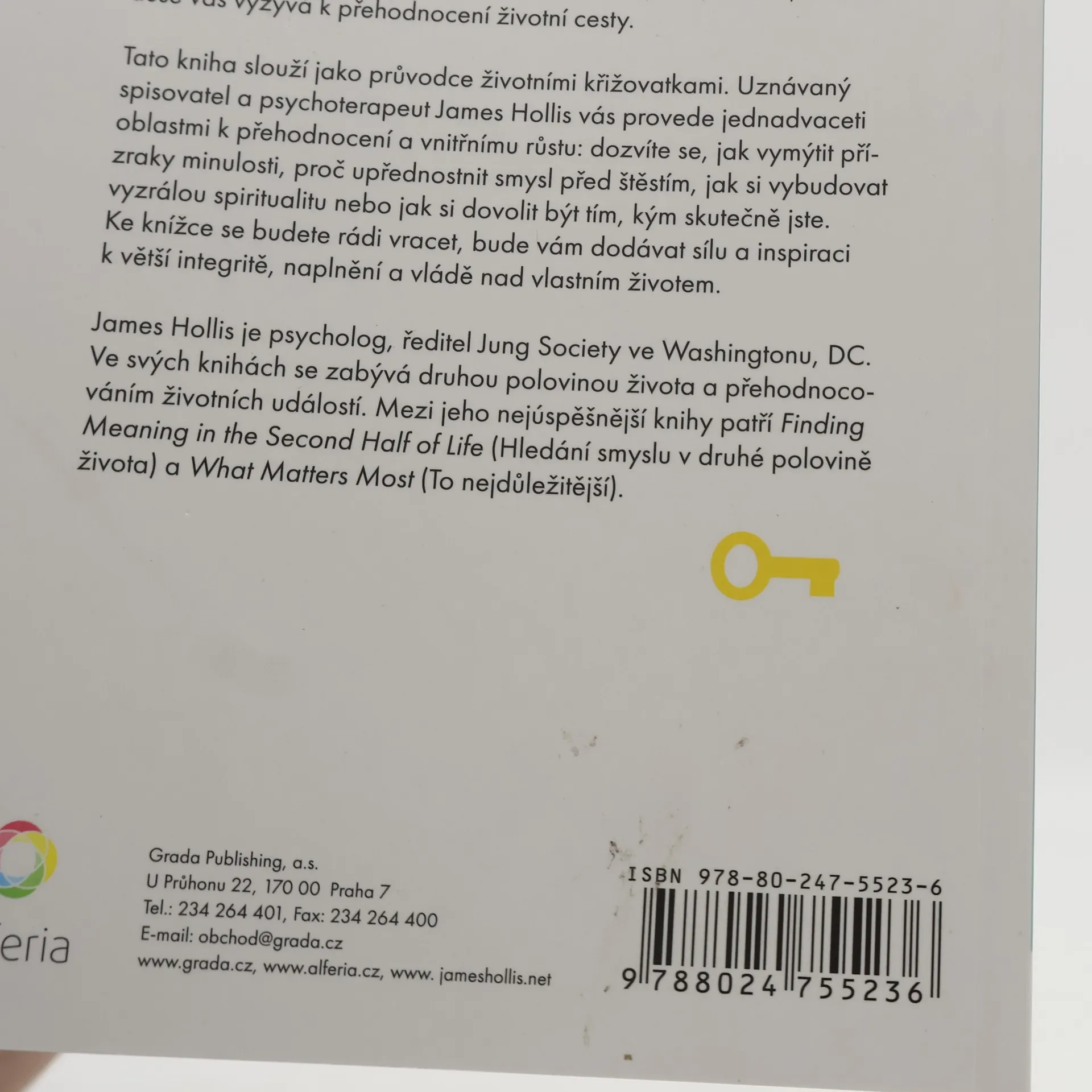 Průvodce lepším poznáním sebe samého a smyslu svého života. Co si představujete pod pojmem „dospělost“? Jsme dospělí, když se nám podaří dosáhnout určitých kulturních milníků — stálého příjmu, řádného placení daní, manželství, založení rodiny? Nebo dospějeme tehdy, když přestaneme hledět na očekávání ostatních a staneme se člověkem, kterým máme skutečně být? Jestli jste se ocitli v situaci, vztahu, profesi či krizi, které jste nikdy nepředpokládali nebo které vám připadají v rozporu s vaším náhledem na sebe sama, znamená to, že vás vaše duše volá k přehodnocení své cesty. Knihou Uvědomělý život James Hollis čtenáři nabízí výjimečného průvodce pro všechny, kteří stojí na životní křižovatce. Uznávaný autor a psychoterapeut vás provede dvaceti jedna oblastmi introspekce a vnitřního růstu — například jak vymýtit přízraky z minulosti, proč upřednostnit smysl před štěstím, jak si vybudovat vyzrálou spiritualitu nebo jakým způsobem se chopit svolení být tím, kým opravdu jste. Dr. Hollis vám s výmluvností a vhledem sobě vlastním dává do rukou zdroj hluboké moudrosti, k němuž se budete opakovaně vracet, abyste na své cestě za životem vnitřní autority, integrity a naplnění načerpali energii a inspiraci.