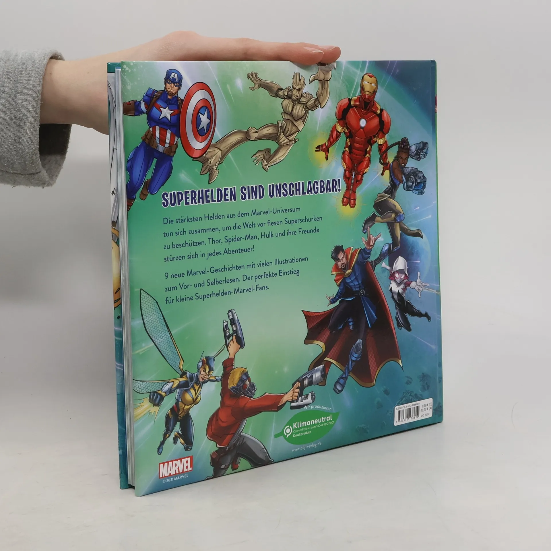 Spannende Abenteuer für kleine Superhelden-Marvel-FansDie stärksten Helden aus dem Marvel-Universum tun sich zusammen, um gemeinsam die Welt vor den Superschurken zu beschützen und viele spannende Abenteuer zu erleben. Mit dabei sind Hulk, Thor, Captain Marvel, die Guardians of the Galaxy, Spider-Man und viele mehr. 9 neue Marvel-Geschichten mit vielen vierfarbigen Illustrationen zum Vor- und Selberlesen für Kinder ab 6 Jahren.Alle Bände der Marvel 5-Minuten-GeschichtenMeine liebsten Marvel-GeschichtenMeine liebsten Marvel-Geschichten 2Marvel Spider-Man 5-Minuten-GeschichtenMarvel 5-Minuten-Geschichten 2