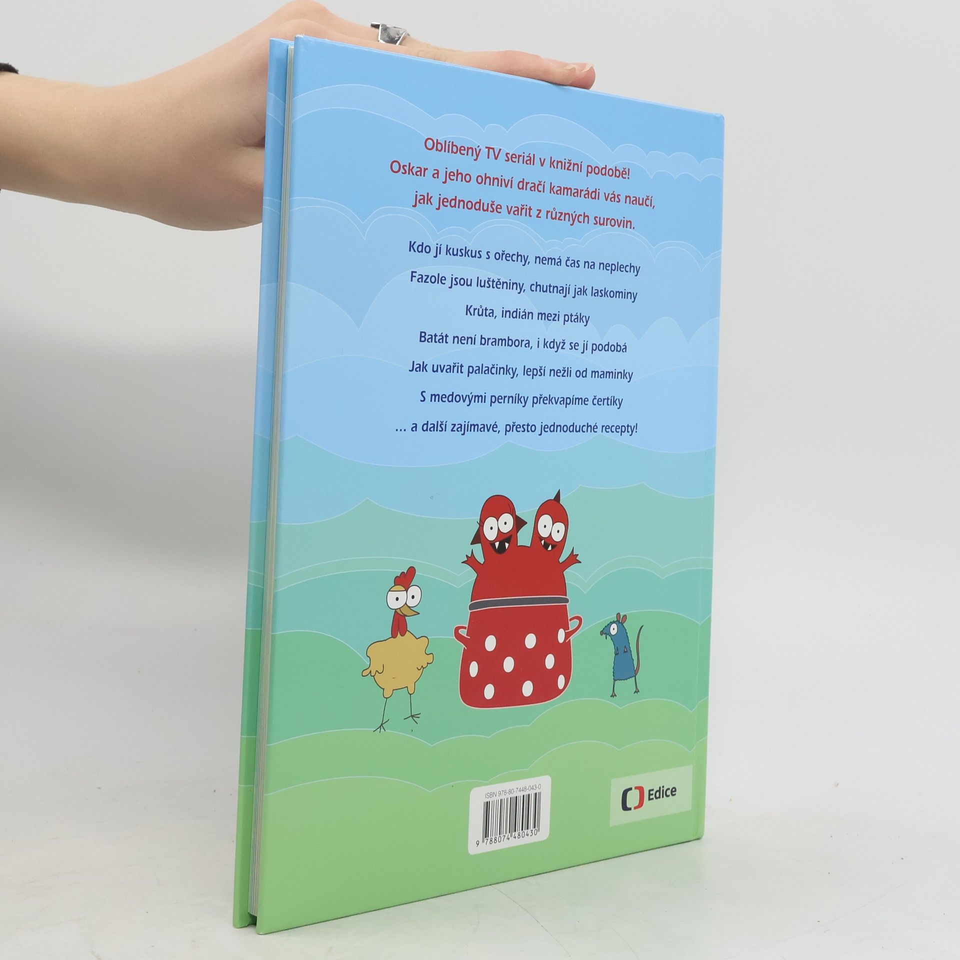 Oblíbený TV seriál v knižní podobě! Oskar a jeho ohniví dračí kamarádi vás naučí, jak jednoduše vařit z různých surovin. Kdo jí kuskus s ořechy, nemá čas na neplechy Fazole jsou luštěniny, chutnají jak laskominy Krůta, indián mezi ptáky Batát není brambory, i když se jí podobá Jak uvařit palačinky, lepší nežli od maminky S medovými perníky překvapíme čertíky ... a další zajímavé, přesto jednoduché recepty!