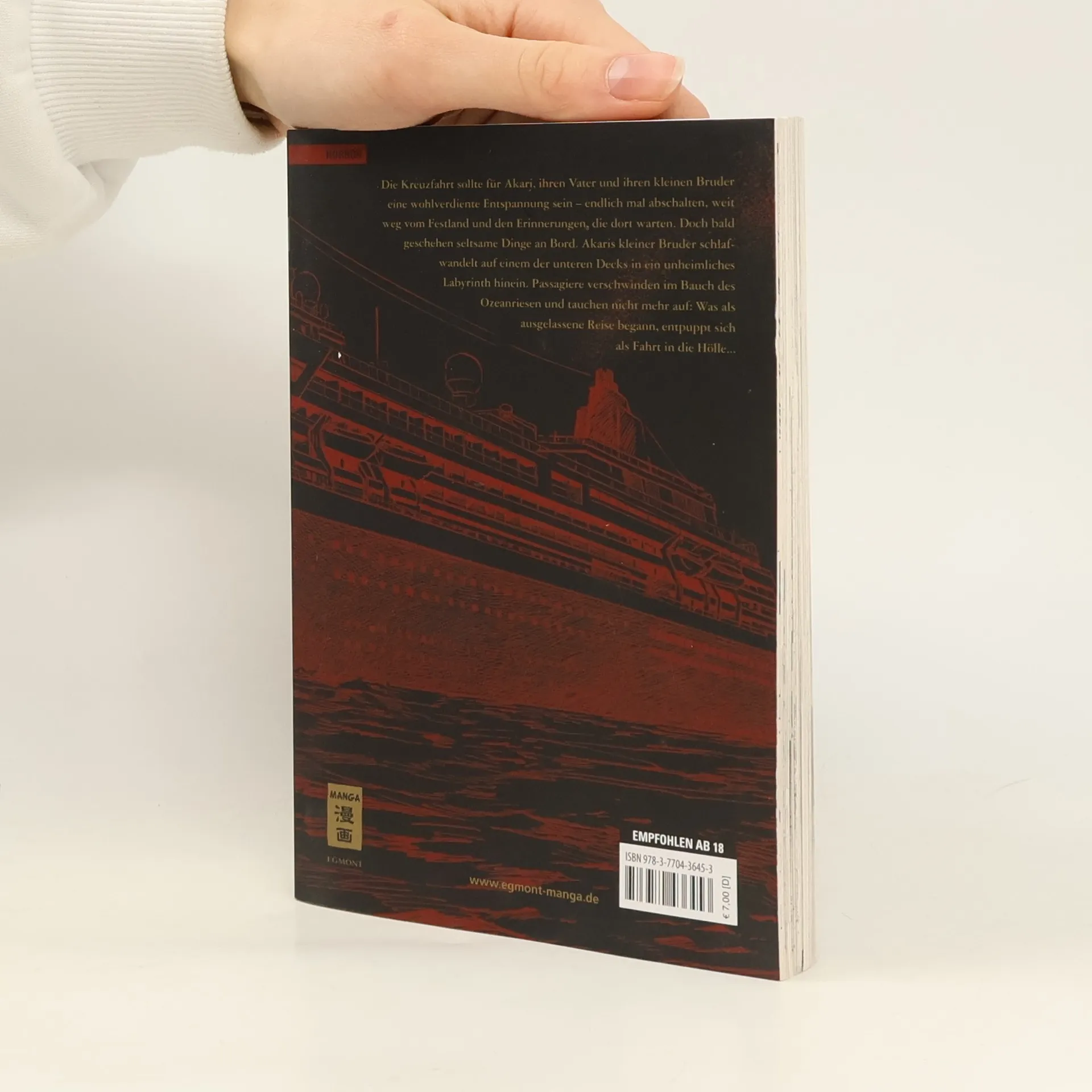 Die Kreuzfahrt sollte für Akari, ihren Vater und ihren kleinen Bruder eine wohlverdiente Entspannung sein - endlich mal abschalten, weit weg vom Festland und den Erinnerungen, die dort warten. Doch bald geschehen seltsame Dinge an Bord. Akaris kleiner Bruder schlafwandelt auf einem der unteren Decks in ein unheimliches Labyrinth hinein. Passagiere verschwinden im Bauch des Ozeanriesen und tauchen nicht mehr auf: Was als ausgelassene Reise begann, entpuppt sich als Fahrt in die Hölle... Band 1 der Serie