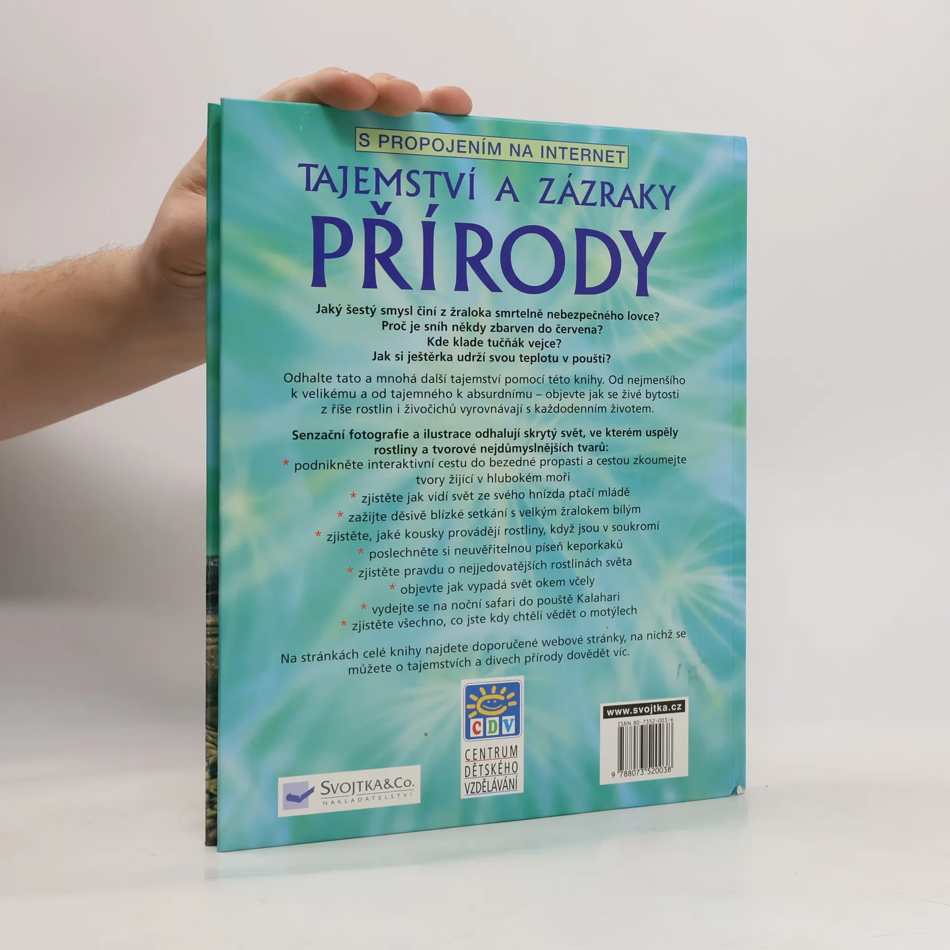 Jaký šestý smysl činí z žraloka smrtelně nebezpečného lovce? Kde klade tučňák vejce? Tato kniha vám odhalí nejen tato, ale mnohá další tajemství přírody. Je doprovázena fotografiemi. Na stránkách celé knihy najdete doporučené webové stránky, na nichž se můžete o tajemstvích a divech přírody dovědět více.