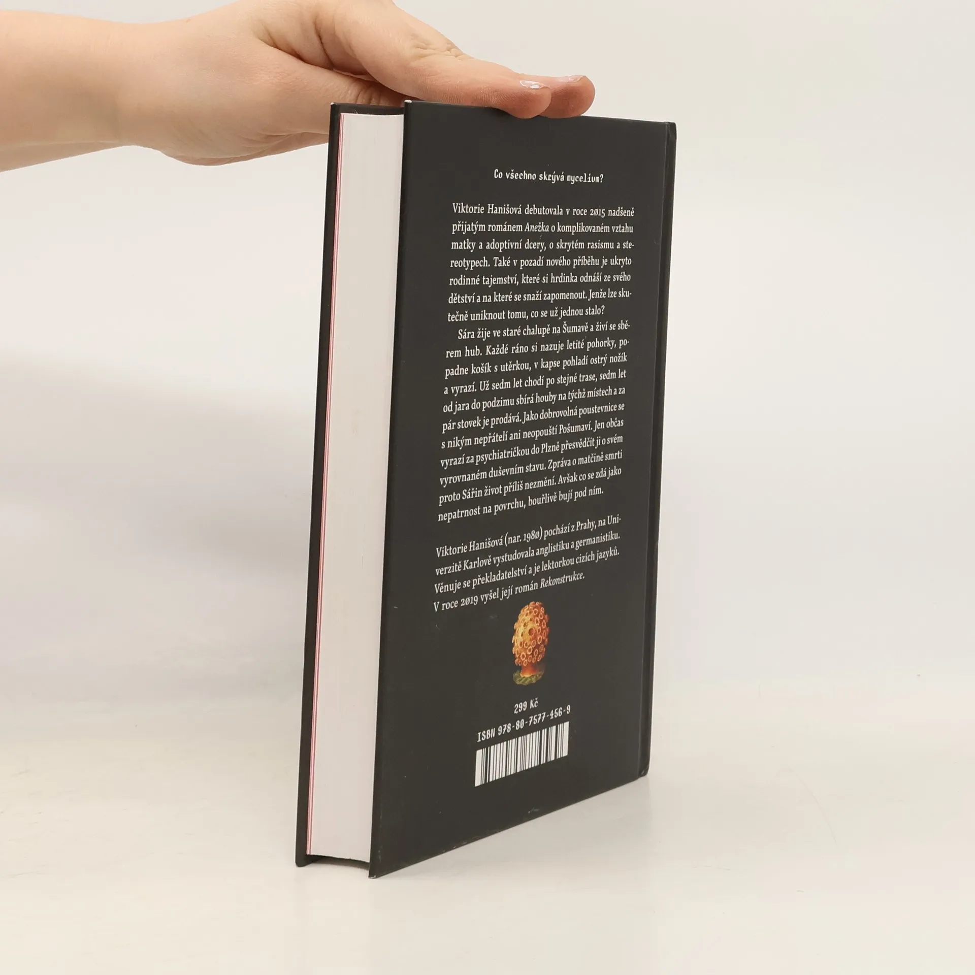 Co všechno se dá najít v lese? Mladá Sára žije ve staré chalupě na Šumavě a živí se sběrem hub. Každé ráno si obuje letité pohorky, popadne košík s utěrkou, v kapse pohladí ostrý nožík a vyrazí. Už sedm let chodí po stejné trase, sedm let od jara do podzimu sbírá houby na týchž místech a prodává je za pár stovek jedné hospodě. Jako dobrovolná poustevnice se s nikým nepřátelí ani neopouští Pošumaví. Jen občas vyrazí za psychiatričkou do Plzně přesvědčit ji o svém vyrovnaném duševním stavu. Zpráva o matčině smrti proto Sářin život příliš nezmění. Zúčastní se pohřbu, setká se s bratry, kterým se už dávno odcizila, a vrátí se zpátky do lesa. Jenže co se zdá jako nepatrnost na povrchu, bouřlivě bují pod ním. Dědické řízení do jejího života navrátí rodinu, která ji zavrhla. A domek se postupně rozpadá. Obchody nejdou. Začíná být jasné, že Sára bude muset svůj houbařský způsob života opustit. A jedinou cestou ven je přestat odvracet oči od toho předchozího. Viktorie Hanišová zpříma a zároveň citlivě měří, co vydrží dětská duše a kde jsou hranice rodiny. Román Houbařka je příběh předem neúspěšného pokusu utéct traumatu. Občas ale nejde neutíkat. Dotisk r. 2020