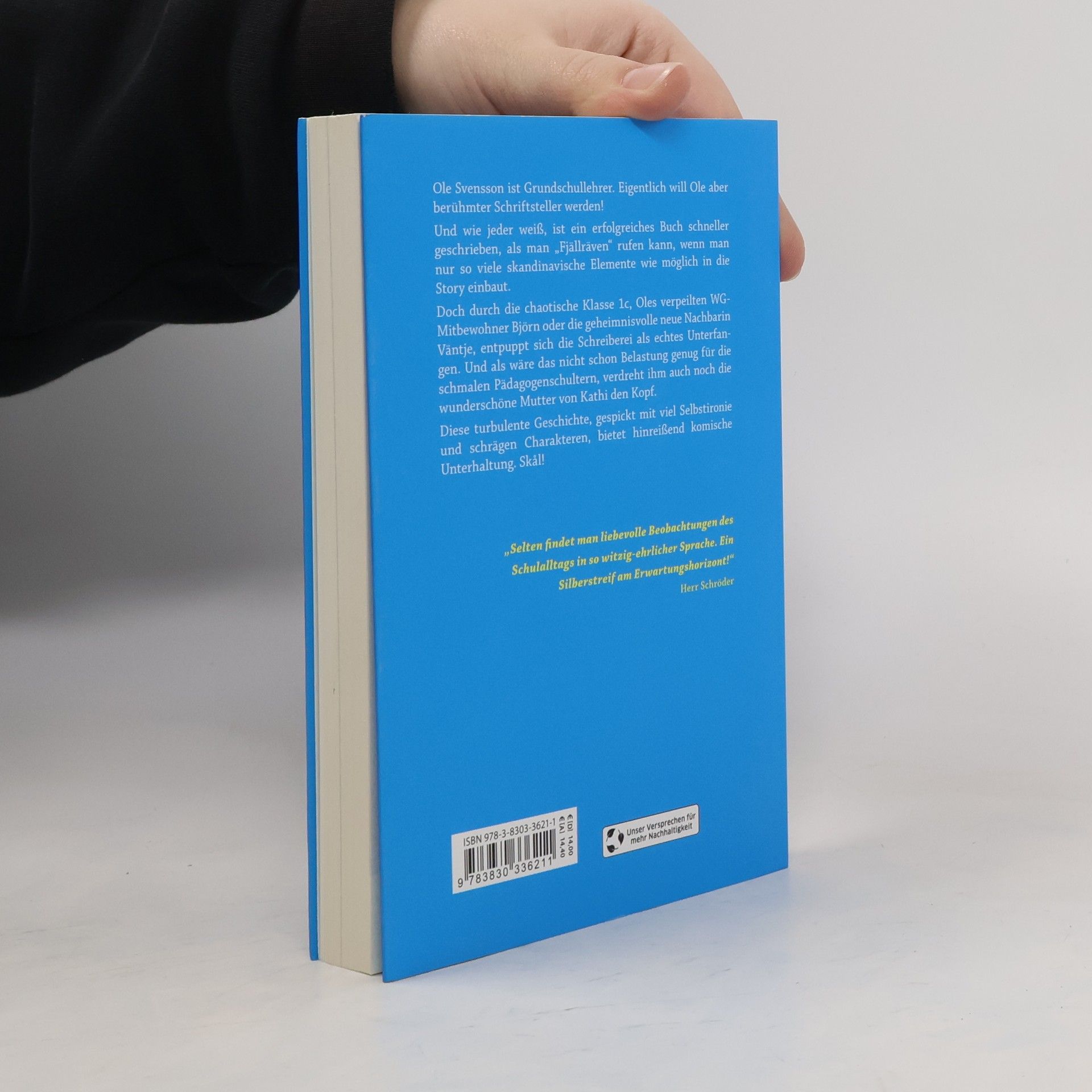 Bastian Bielendorfer kann sein Pausenbrot einpacken, hier kommt der neue Star der großen Pause: Dominik Ehrst ! Ole Svensson ist Grundschullehrer. Eigentlich will Ole aber berühmter Schriftsteller werden. Und wie jeder weiß, schreibt sich ein erfolgreiches Buch schneller, als man „Fjällräven“ rufen kann. Man muss nur so viele skandinavische Elemente wie möglich in die Story einbauen! Doch die Schreiberei entpuppt sich für Ole als echtes Unterfangen. Schuld daran sind die chaotische Klasse 1c, sein verpeilter WG-Mitbewohner Björn und die geheimnisvolle neue Nachbarin Vänntje. Und als wäre das nicht schon Belastung genug für die schmalen Pädagogenschultern, verdreht ihm auch noch die wunderschöne Mutter von Kathi den Kopf. Skurrile Anekdoten mitten aus dem Lehrerleben Dominik Ehrst ist nicht nur Comedy-Autor, Moderator und Poetry Slammer, sondern auch selber Lehrer. Er weiß also genau, wovon er schreibt! Nicht zuletzt dadurch liest sich seine turbulente Geschichte so lebensnah , auch wenn sie vor schrägen Charakteren nur so wimmelt. Für Fans unverzichtbar, aber auch ein ideales Geschenk für Lehrer*innen oder Erziehungswissenschaftler*innen: Dieses Buch bietet hinreißend komische Unterhaltung voller Skurrilität und Selbstironie. Skål! » Äußerst amüsante Grundschulanekdoten « MDR » Helge Schneider im Körper von Owen Wilson « KgB Bremen