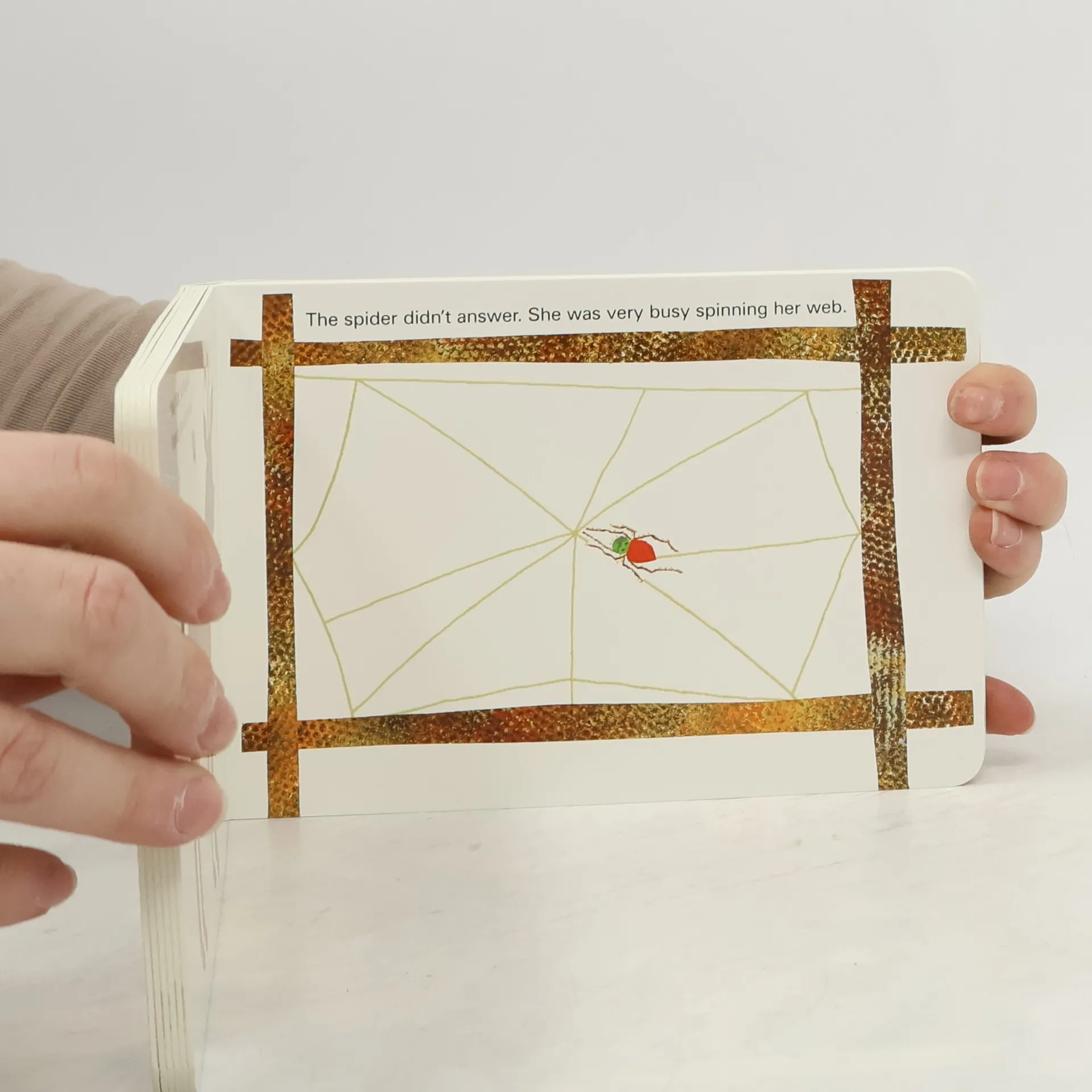 Some animals on a farm see a spider spinning a web on a fence post and try to talk to it. But the spider is too busy to respond, until a rooster asks about catching a pesty fly. The Very Busy Spider is a boardbook to feel as well as read and hear.