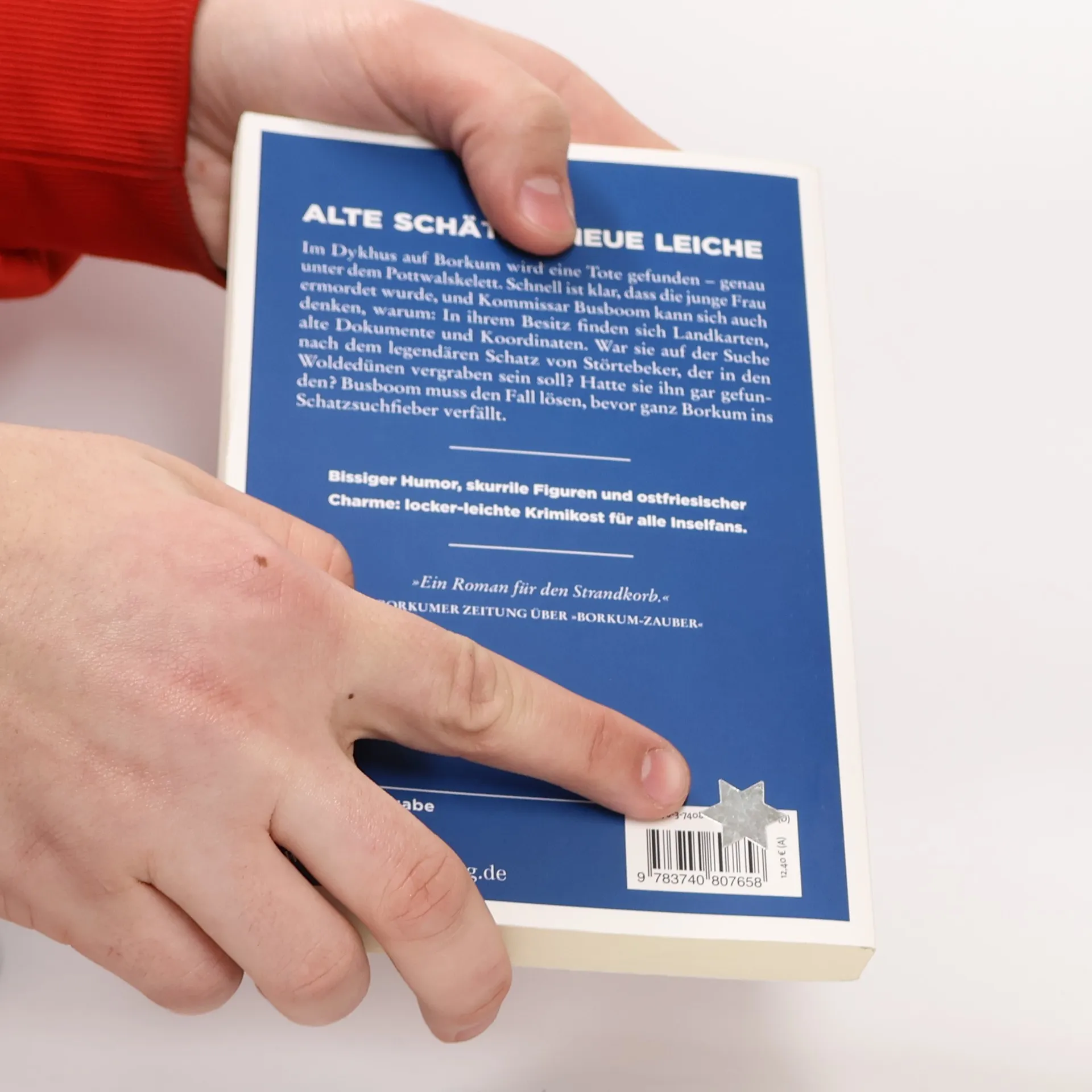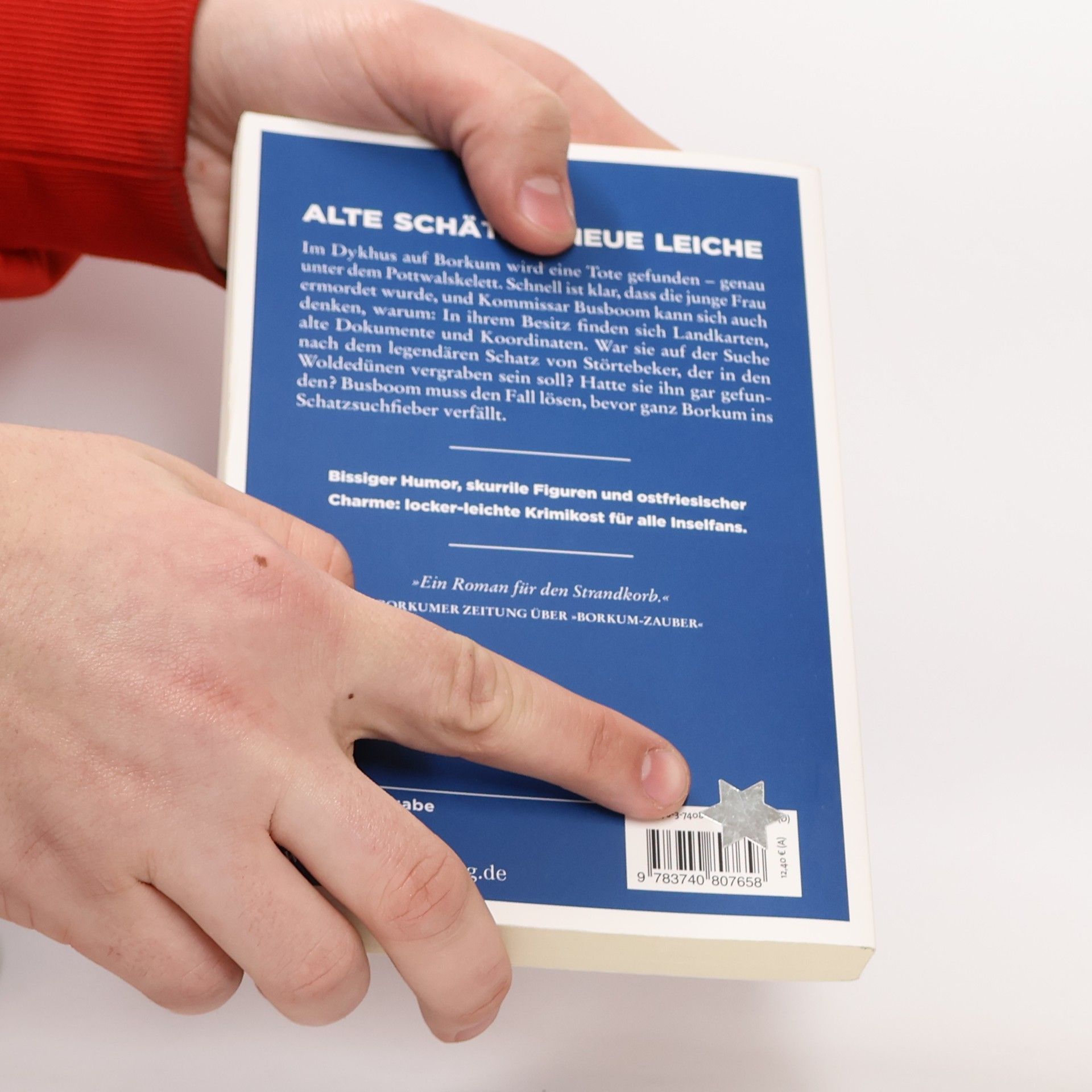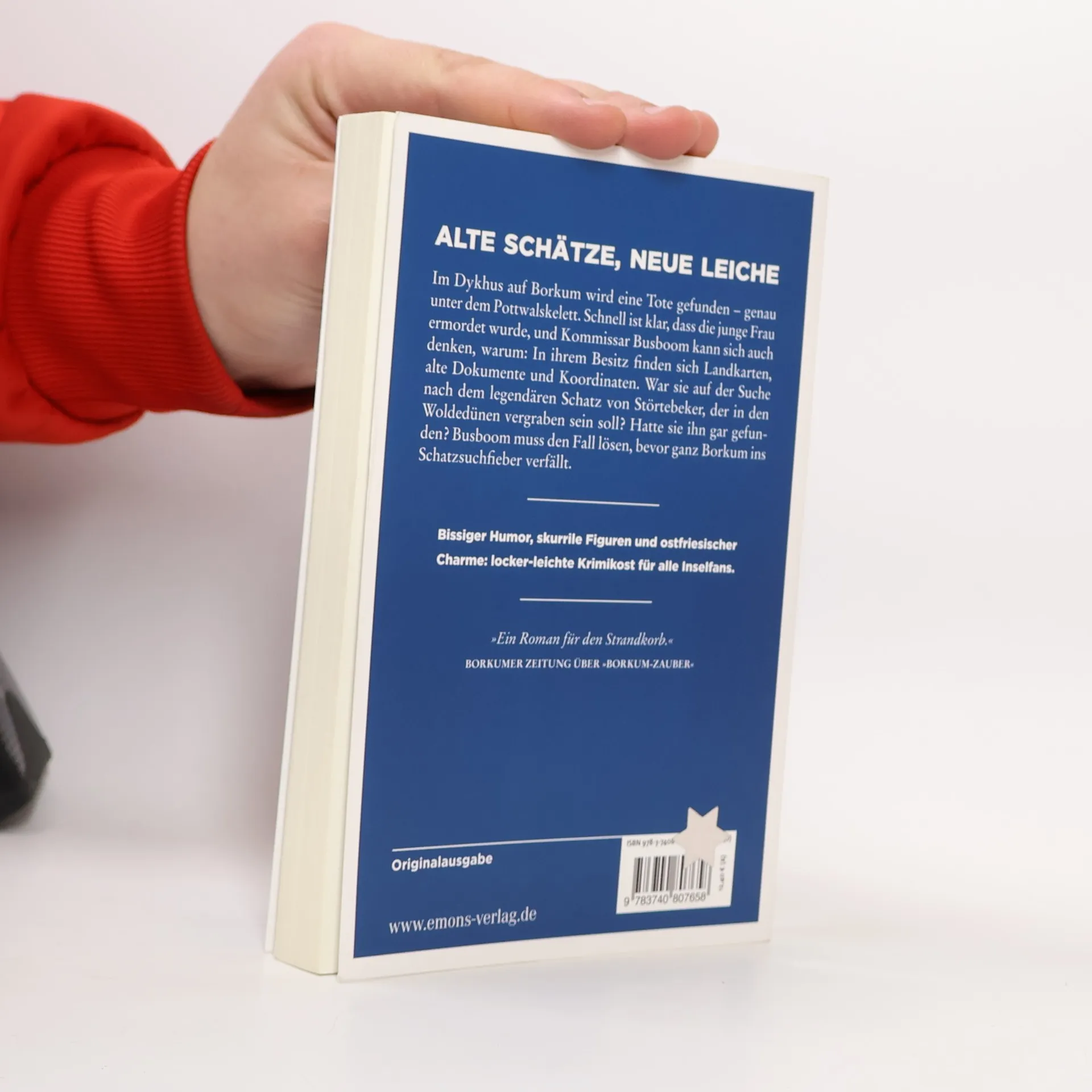 Bissiger Humor, skurrile Figuren und ostfriesischer Charme. Im Dykhus auf Borkum wird eine Tote gefunden – genau unter dem Pottwalskelett. Schnell ist klar, dass die junge Frau ermordet wurde, und Kommissar Busboom kann sich auch denken, warum: In ihrem Besitz finden sich Landkarten, alte Dokumente und Koordinaten. War sie auf der Suche nach dem legendären Schatz von Störtebeker, der in den Woldedünen vergraben sein soll? Hatte sie ihn gar gefunden? Busboom muss den Fall lösen, bevor ganz Borkum ins Schatzsuchfieber verfällt.