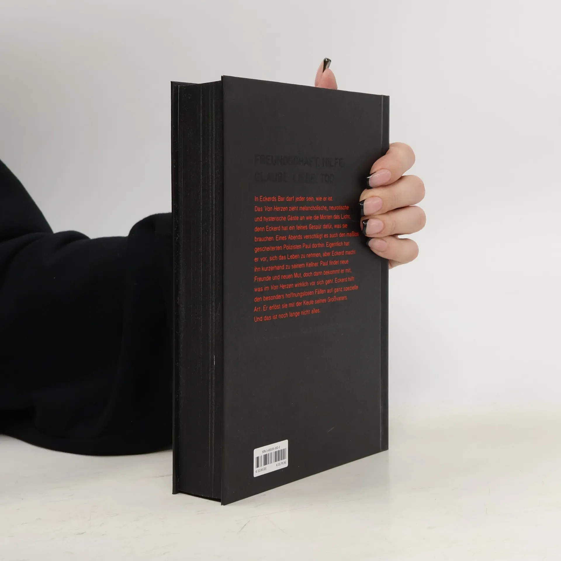 Eckerd von Herzen hat eine Mission. In seiner Bar soll jeder Zuflucht finden, der nicht mehr weiterweis, sich nach einem offenen Ohr, einem gemeinsamen Drink, nach jemandem wie Eckerd sehnt. Denn der empathische Gastgeber weiß, was seine Gäste brauchen. Und wie er sie von ihren Sorgen befreien kann. Den besonders hoffnungslosen Fallen hilft er auf ganz spezielle indem er sie mit der Keule seines Großvaters erlöst. Eines Abends verschlagt es den maßlos gescheiterten Polizisten Paul ins ›Von Herzen‹. Eigentlich hat er vor, sich das Leben zu nehmen, aber Eckerd sieht etwas in ihm und macht ihn zu seinem Kellner. Paul findet neue Freunde – und neuen Mut. Doch dann bekommt er mit, was in der Bar vor sich geht ...