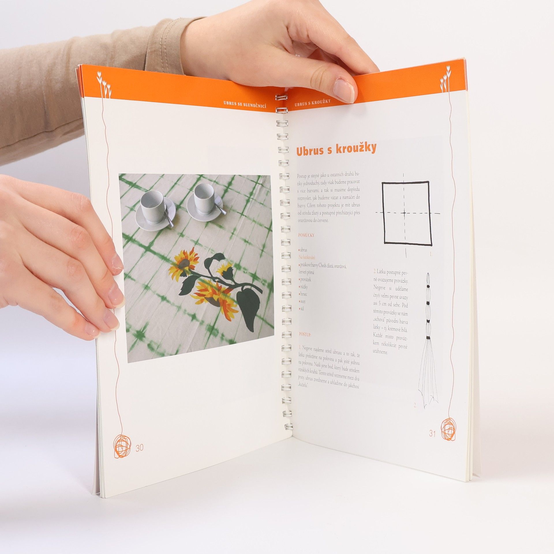 Příručka se zaměřuje na dekorování bytového textilu (ubrusy, polštáře, závěsy ap.) batikou, malbou, tiskem, odbarvováním a ubrouskovou technikou.