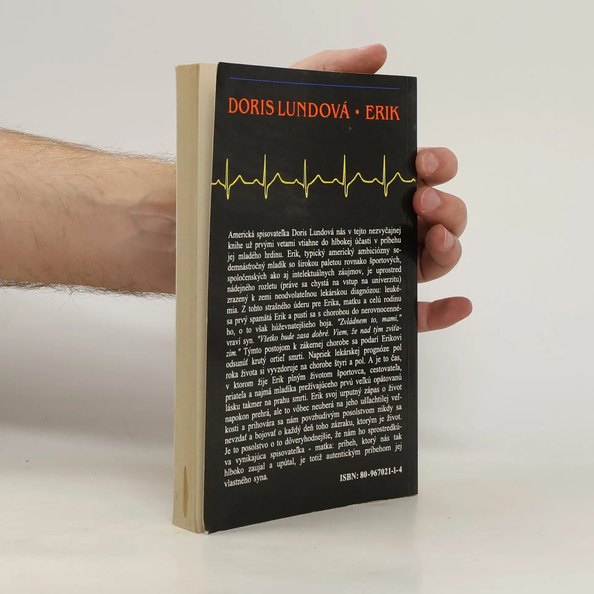 Hrdinom knihy je Erik, športovec, kapitán futbalového mužstva známej univerzity, dobrý priateľ, pomocník detí, milujúci syn a brat. Má 17 rokov a chystá sa nastúpiť do prvého ročníka na Connecticutskú univerzitu. Nikto okrem najbližšieho okolia ani netuší, že tento hybký pozorný mládenecsa púšťa do ukrutného a márneho boja s neľútostnou chorobou. Lekári mu dávajú slabú nádej, takmer nijakú, no on vydrží bojovať štyri a pol roka. Sú to roky, v ktorých vychutnáva život a žije ho tak naplno, ako máloktorý zdravý človek. Iba matka ho vidí vo chvíľach reakcie na drastické lieky, v slabosti, vo chvíľach, keď už-už chce vzdať, ale vidí ho aj vo chvíľach, keď dodáva odvahy iným pacientom, rodičom, súrodencom, milej. Doris Lundová si námet tejto knihy nevybrala pre jeho zaujímavosť, dramatickosť, pre možnosti, aké poskytuje pri sprostredkúvaní nového poznania, ktoré nemôže nechať ľahostajným nikoho na celej zemeguli, kým veda túto hroznú hrozbu ľudstva neodstráni. Námet vnútila autorke strašná skutočnosť - jej synovi Erikovi zistili lekári leukémiu. Preto je kniha nielen úzkostlivým pohľadom matky, ale aj vecným pohľadom reportérky na strhujúci zápas človeka v novom, neznámom prostredí, pohľadom, ktorý sprostredkúva čitateľovi nové skúsenosti.