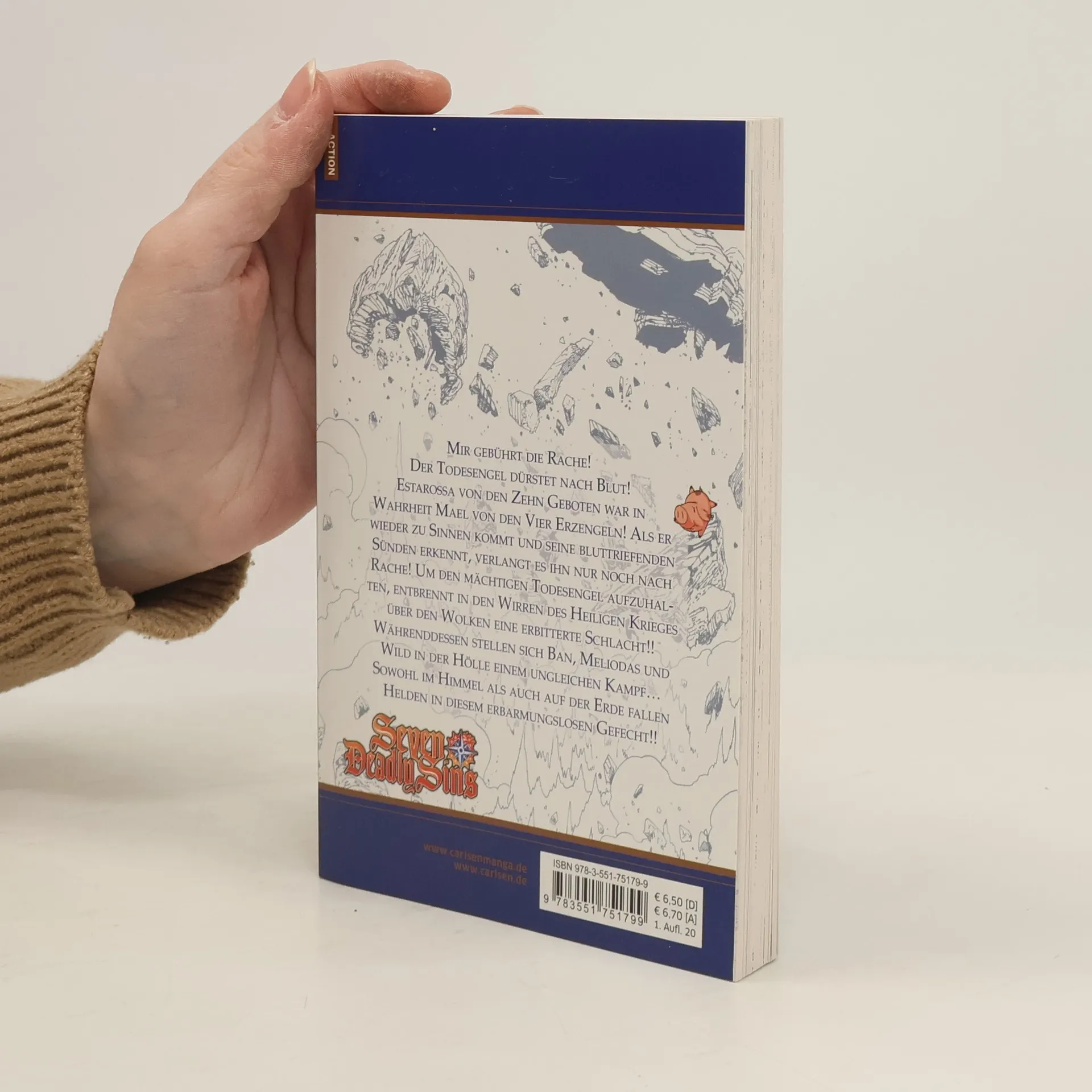 Die sieben Todsünden kämpfen für das Gute! Mir gebührt die Rache! Der Todesengel dürstet nach Blut! Estarossa von den Zehn Geboten war in Wahrheit Mael von den Vier Erzengeln! Als er wieder zu Sinnen kommt und seine bluttriefenden Sünden erkennt, verlangt es ihn nur noch nach Rache! Um den mächtigen Todesengel aufzuhalten, entbrennt in den Wirren des Heiligen Krieges über den Wolken eine erbitterte Schlacht!! Währenddessen stellen sich Ban, Meliodas und Wild in der Hölle einem ungleichen Kampf… Sowohl im Himmel als auch auf der Erde fallen Helden in diesem erbarmungslosen Gefecht!! Der actionreiche Fantasymanga SEVEN DEADLY SINS punktet mit viel Witz, aber auch Drama. Durch seine riesige Beliebtheit wurde dieser Bestseller von Nakaba Suzuki daher bereits als Anime umgesetzt und hat einen Kinofilm sowie Videospielumsetzungen für Playstation 4 und Smartphones/Tablets. Weitere Informationen: - Perfekt für Fans von Dragon Ball, Fairy Tail, One Piece und My Hero Academia! - Empfohlen ab 12 Jahren - Abgeschlossen in 41 Bänden