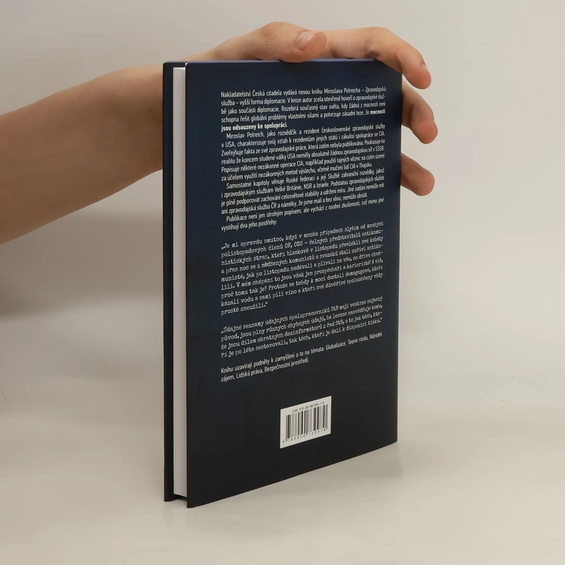 Nakladatelství Česká citadela vydává novou knihu Miroslava Polreicha, která se zaměřuje na zpravodajskou službu jako klíčovou součást diplomacie. Autor otevřeně analyzuje současný stav světa, kde mocnosti nemohou samostatně řešit globální problémy a jsou nuceny spolupracovat. Jako bývalý rozvědčík a rezident československé zpravodajské služby v USA sdílí své zkušenosti a fakta o spolupráci s CIA, včetně odhalení, že na konci studené války USA postrádaly zpravodajskou síť v SSSR. Zmiňuje nezákonné operace CIA, jako jsou tajné věznice a mučení. Kniha se rovněž věnuje ruské Službě zahraniční rozvědky a zpravodajským službám Velké Británie, NSR a Izraele. Podtrhuje, že zpravodajské služby mají za úkol podporovat globální stabilitu a mír, a vyvrací námitky o malém vlivu ČR. Publikace není pouze popisem, ale vychází z osobních zkušeností autora, který kritizuje kariérismus a demagogii v politice. Na závěr nabízí podněty k zamyšlení o globalizaci, národním zájmu a lidských právech. Čtenáři se mohou těšit na informace, které dosud nebyly zveřejněny a pravděpodobně jsou pod stupněm utajení.