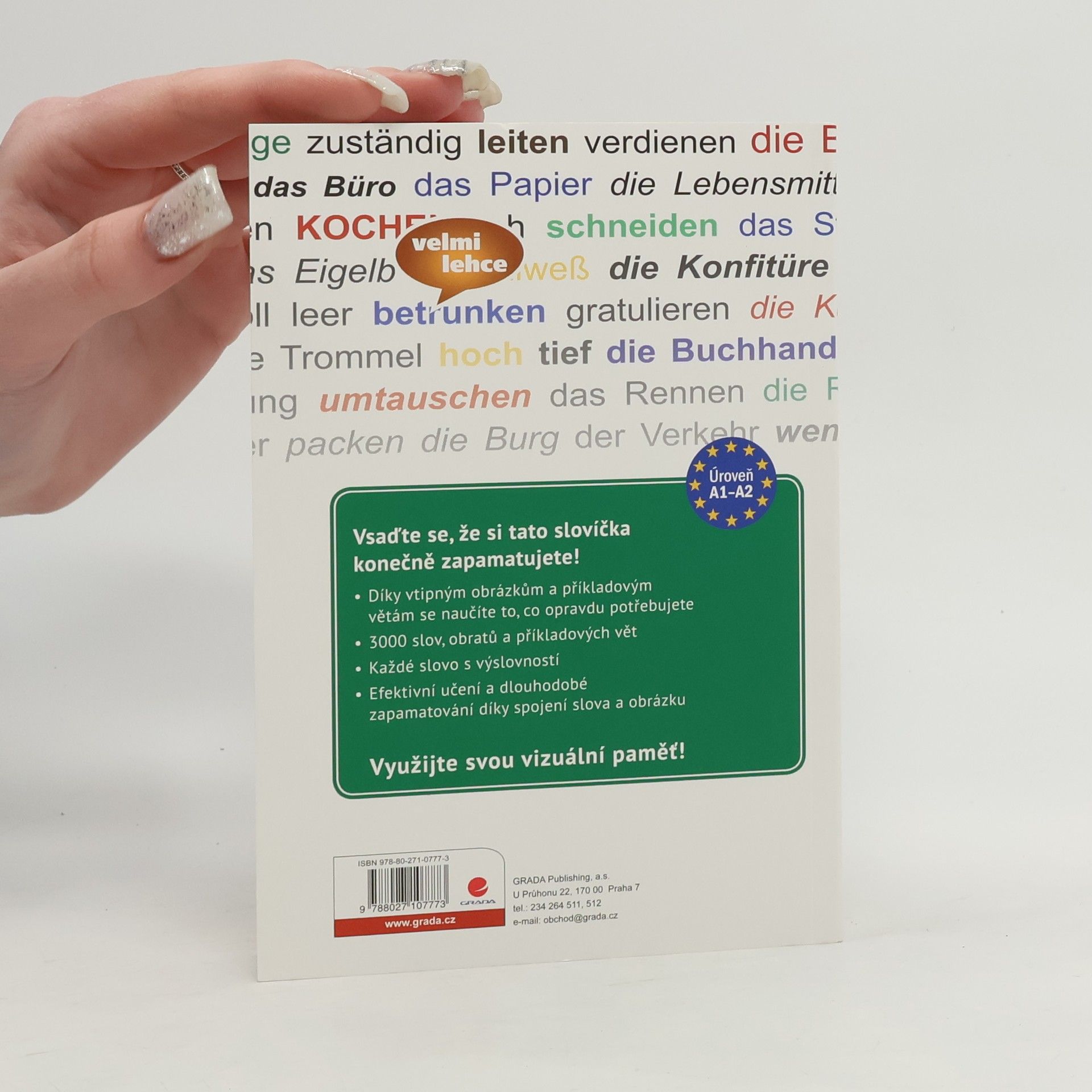 Chcete se učit zábavnou formou a nešprtat se nazpaměť? Tato zcela nově koncipovaná slovní zásoba garantuje zábavné a současně úspěšné učení a je pro vás to pravé. Funguje to následovně: už spojení snadno zapamatovatelných obrázků se slovem a jeho použitím v příkladové větě umožňuje dobré uložení slovíček do paměti. A ještě lepší je, pokud se spojení příkladové věty s obrázkem můžeme zasmát. Vtipná nebo ironická souvislost mezi slovem, obrázkem a příkladovou větou umožňuje dobré zapamatování. Slovní zásoba je rozčleněna do pěti velkých oblastí života a vybrána s ohledem na četnost, aktuálnost a užitečnost. Slova spolu vždy tematicky souvisí, což učení ještě více usnadňuje. Slovní zásobu rozšiřují doplňující seznamy slov. U každého slova je uveden slovní druh, výslovnost a český překlad. Různé slovní druhy jsou barevně označeny a text doplňují informace o použití a rozlišování snadno zaměnitelných slov nebo o dalších jazykových zvláštnostech, například v oblasti slovotvorby.