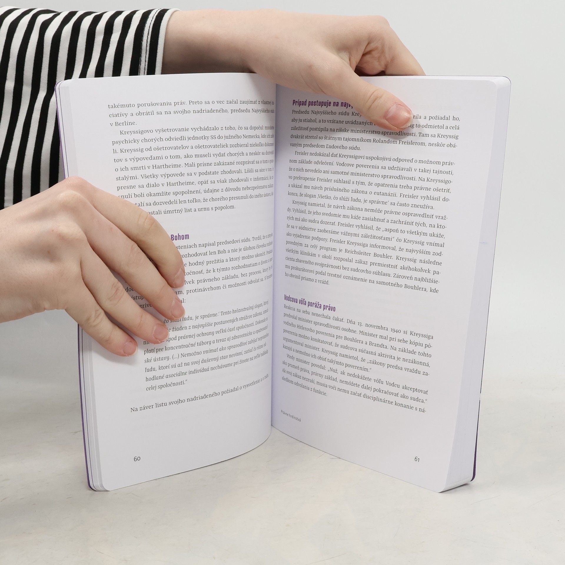 Kniha nórskeho profesora práva je postavená na reálnych príbehoch právnikov a sudcov, ktorí sa v záujme vyššieho dobra postavili zákonu alebo orgánom verejnej moci a mali by čitateľa pri jeho rozhodovaní inšpirovať k väčšej odvahe postaviť sa nespravodlivosti. V knihe nájdete 11 príbehov reálnych osobností z právneho sveta z obdobia stredoveku či expanzie hitlerovského Nemecka v Európe, ale aj príbehy poznačené érou rasovej segregácie, či obdobím boja za nezávislosť súdov v súčasnom Poľsku. Posledný príbeh je fiktívny, postavený na literárnom diele Margaret Atwood, autorky Príbehu služobníčky. Kniha je venovaná nielen právnikom a právničkám, ale aj širokej verejnosti.