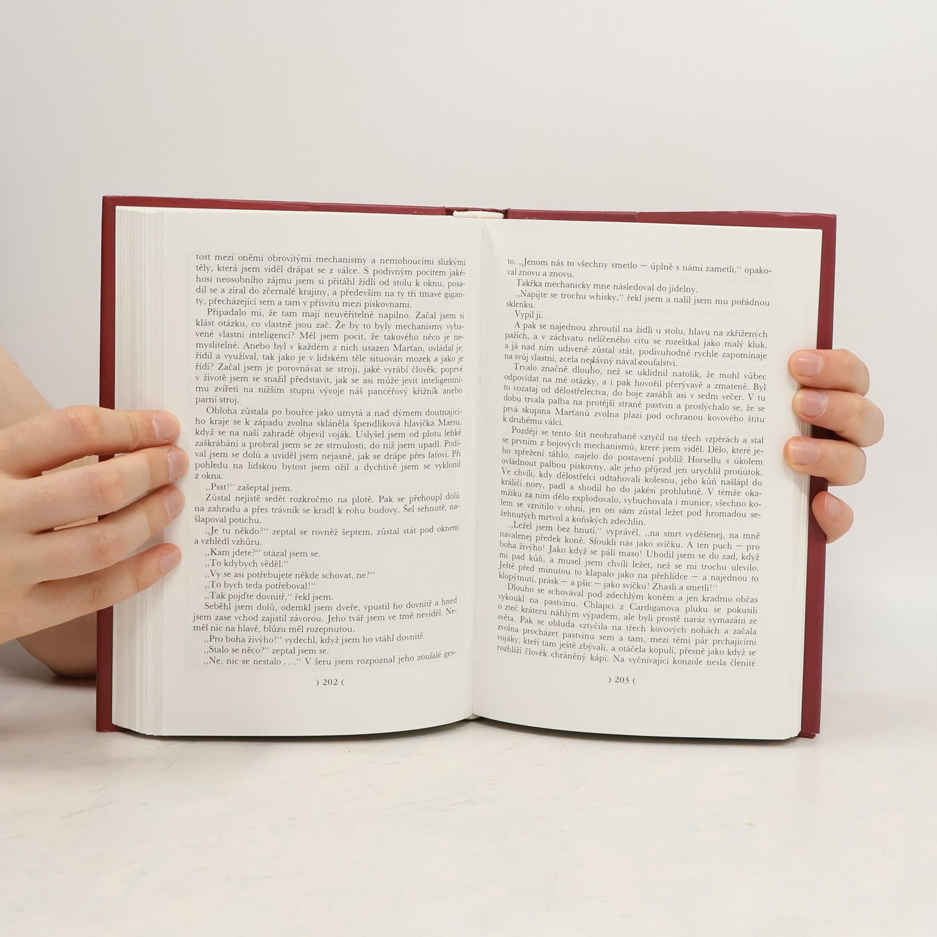 Mimozemské bytosti přepadly Zemi! V pravidelných čtřiadvacetihodinových intervalech se jejich kosmické lodi zarývají do půdy londýnského předměstí, začíná útok na velkoměsto žijící až dosud v idylickém poklidu konce devatenáctého století. Herbert George Wells, vedle Julese Verna jeden z otců tehdy zbrusu nového literárního žánru, science fiction, byl první, kdo myšlence hvězdných válek dal dramatickou a věrohodnou podobu. Ani sto let od vzniku tohoto příběhu mu pranic neubralo na působivosti. 30. října 1938 propukla v USA panika, když mladý režisér Orson Welles inscenoval Válku světů jako rozhlasovou reportáž, až příliš realistickou. Ale i dnes podléháme dokonalé iluzi o střetu dvou civilizací, prožíváme drama meziplanetární invaze, selhání všech prostředků lidské obrany proti technicky vyspělejším útočníkům i konečnou tragédii cizorodých agresorů. H. G. Wells měl dar vytvářet dokonalou kulisu a zcela svého čtenáře uchvátit strhujícím dějem. Živě tak před námi vyvstává svět před sto lety - a nepůsobí nijak komicky, třebaže bicykl v něm náleží k nejnovějším vymoženostem rychlého pohybu, dělostřelci se dosud dorozumívají záblesky heliografu a do proudu kočárů, bryček a fiakrů prchajících z hynoucího Londýna se tu a tam mísí první automobily. Umění obratné mystifikace prostupuje u výběr z dalších Wellsových fantastických povídek, které Válku světů v tomto svazku doprovázejí a které svými náměty sahají od podivuhodné logické smyčky v příběhu Muže, jenž dokázal činit zázraky, až k Zemi slepců, kde je přísloví o jednookém králi drasticky obráceno naruby. H. G. Wells měl obdivuhodně široký rejstřík životních setkání, počínaje jeho učitelem, velkým biologem Julianem Huxleyem přes Lenina, Roosevelta a Stalina až po Karla Čapka - v tomto posledním případě si tvůrce pojmu "Marťané" podal ruku s vynálezcem slova "Robot". Dodnes dokáže Wells svým obrazem marťanského vpádu podráždit sebevědomí svých čtenářů, obyvatelů Země, a dotknout se jejich nejskrytějších obav: Nebyl to jen předvoj? Nejsou v hlubinách vesmíru připraveny další vlny kosmického výsadku?