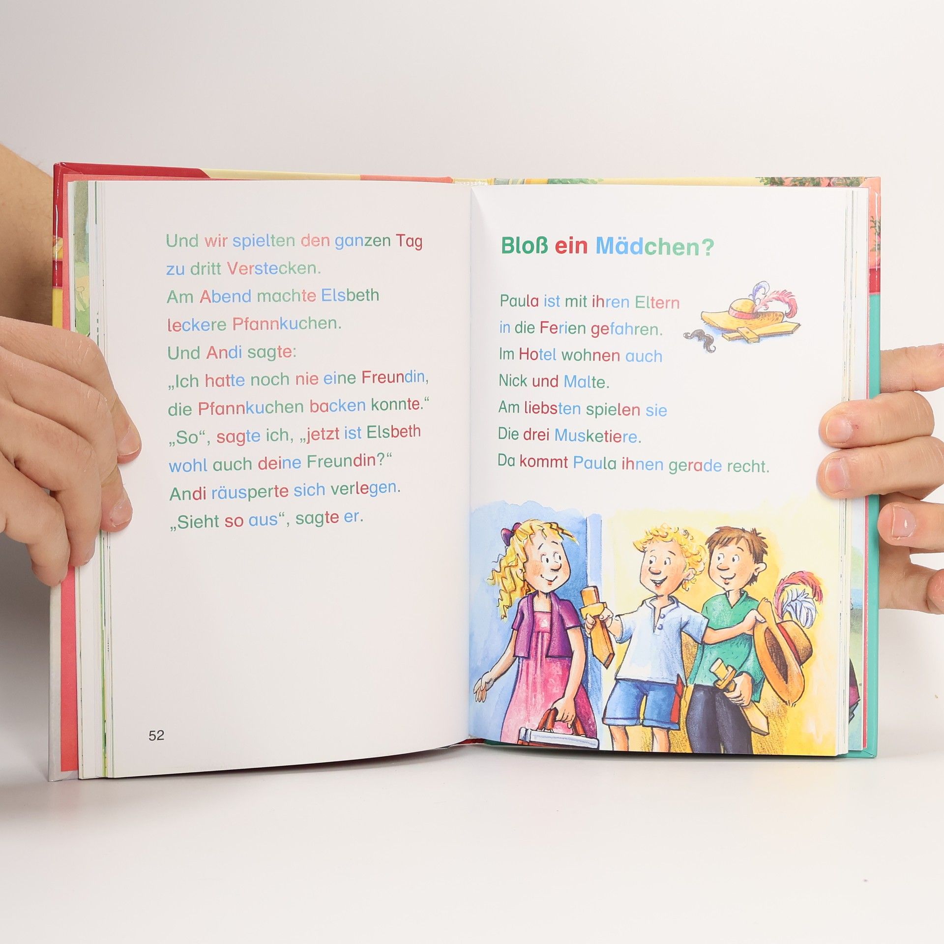 Das Buch ist bei deiner Buchhandlung vor Ort und bei vielen Online-Buchshops erhältlich! + Bücher, die Kinder gerne lesen wollen + Beliebte Abenteuer, Tiere und Freundschaft + Speziell für Mädchen + Ausgewogenes Text-Bild-Verhältnis + Große Schrift + Kurze Kapitel + Geeignet zum ersten Selberlesen + Ideal zum Lesenlernen + Hochwertiges Hardcover + Mit vielen farbigen Illustrationen + Bewährte Qualität + Mira und Jo sind völlig verschieden und trotzdem die besten Freundinnen. Da können die anderen sagen, was sie wollen. Und auch Eva will es allen zeigen! Die Jungs sollen nicht noch einmal sagen, d sie keine Ahnung von Fahrrädern hat. Amelie hingegen ist unglücklich, weil ihre Familie umziehen musste. Aber als sie in der Nähe einen Reitstall entdeckt, gefällt ihr das neue Zuhause doch ganz gut. Durch kurze, einfache Sätze in großer Fibelschrift können Mädchen ab 7 Jahren ( 2. Kle ) leicht lesen lernen . Die Silbenmethode unterstützt sie Die farbige Markierung der einzelnen Silben sorgt für bessere Erkennbarkeit und damit für einen schnelleren Leseerfolg . Diese verbessert nachweislich die Rechtschreibung. Die vielen bunten Bilder in diesem Kinderbuch tragen zusätzlich zum Textverständnis bei. Die besten Silbengeschichten zum Lesenlernen - Wörter durch Silben schneller erkennen - den Sinn der Wörter besser erfen - flüssiger lesen Der Titel ist bei Antolin gelistet.