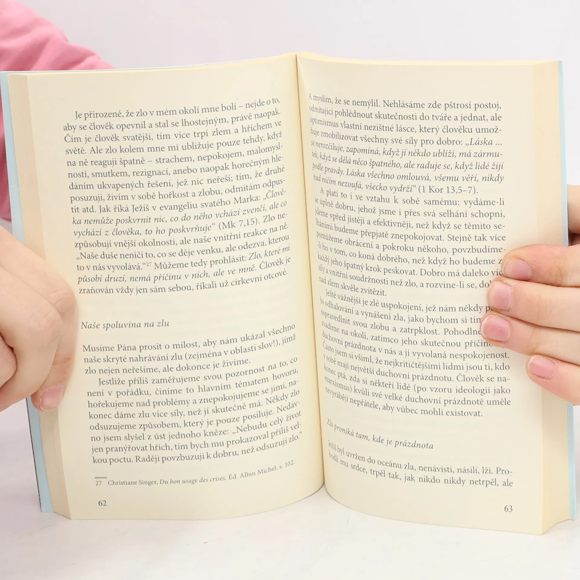 Knížka se dotýká klíčového rozměru života křesťana – jeho vnitřní svobody. Každý křesťan by si měl v sobě i za těch nejméně příznivých vnějších okolností uchovat prostor svobody, který mu nikdo nemůže vzít. Svobodu mu dává Bůh a Bůh za ni také ručí. Bez tohoto poznání se budeme cítit sevření, nesvobodní a neokusíme skutečné štěstí.