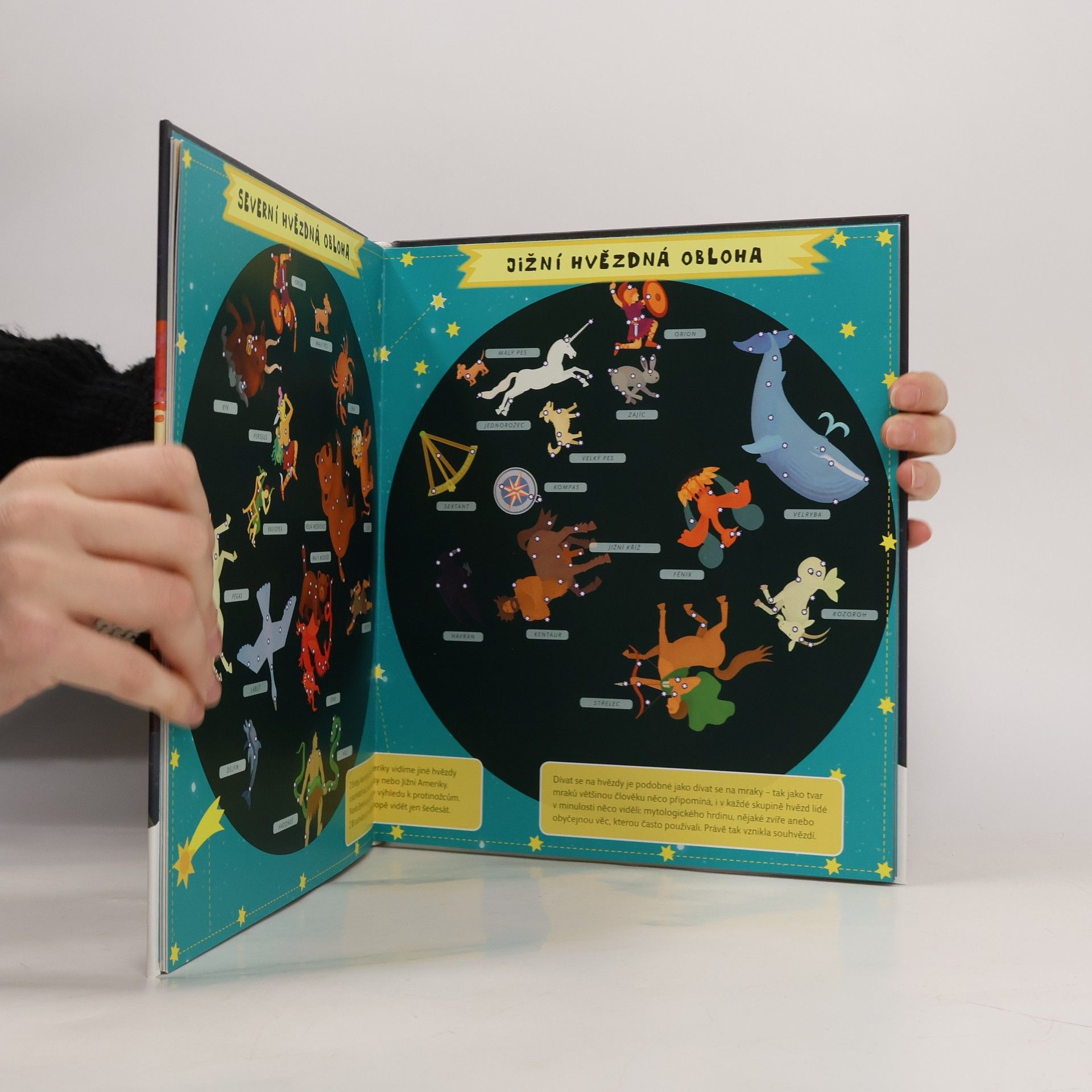 Nádherně ilustrovaný atlas s šesti velkými rozkládacími mapami odhalí všem malým zájemcům skrytá tajemství blízkého i vzdáleného vesmíru. Čeká tě procházka po naší Sluneční soustavě, navštívíš komety a planetky, podnikneš výlet na Měsíc, seznámíš se s prvními astronauty a vyzkoušíš si, jaké je cestovat v raketoplánu nebo žít na vesmírné stanici. Mapa severní i jižní oblohy tě naučí rozpoznávat ta nejznámější souhvězdí.