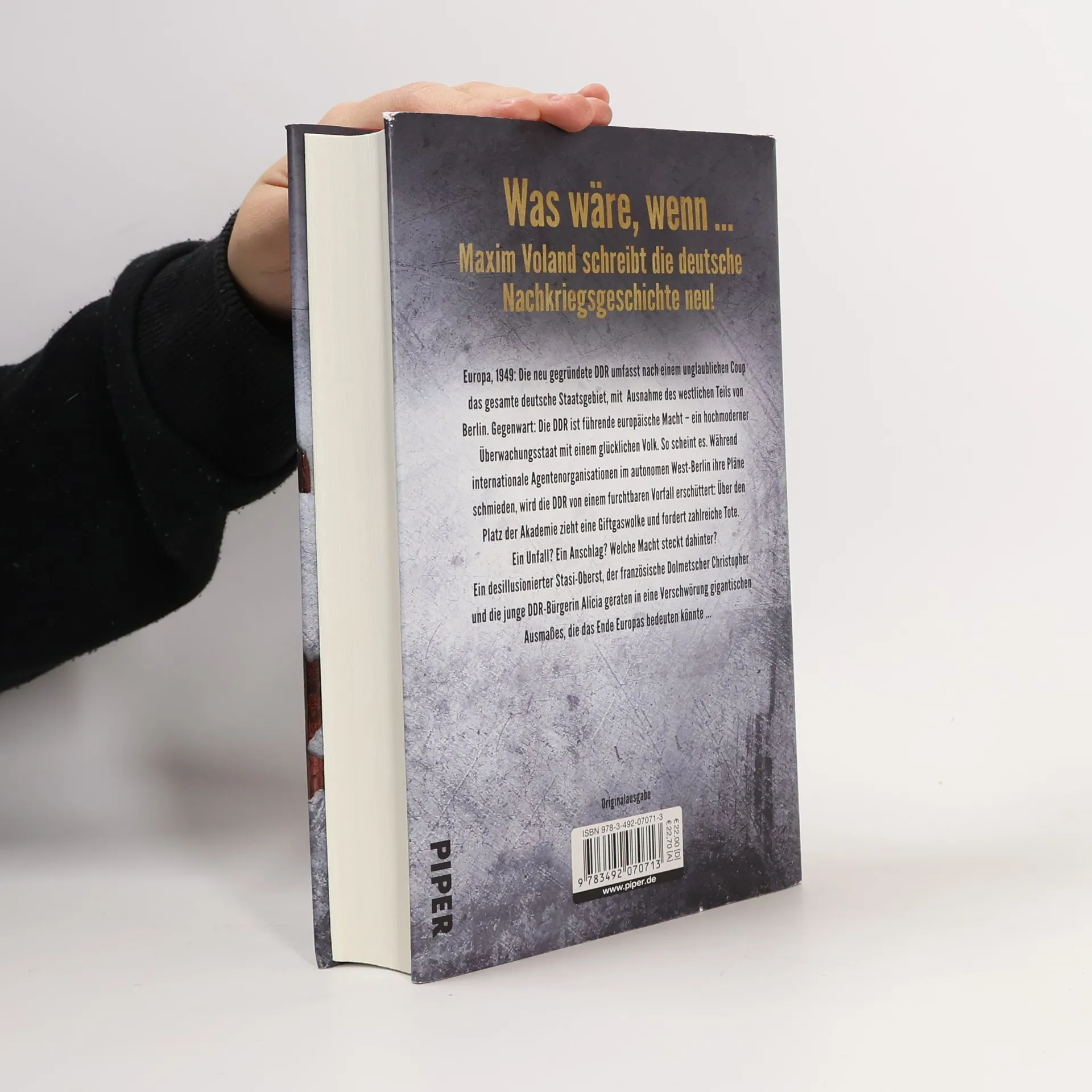 "Europa, 1949: Die neu gegründete DDR umfasst nach einem unglaublichen Coup das gesamte deutsche Staatsgebiet, mit Ausnahme des westlichen Teils von Berlin. Gegenwart: Die DDR ist führende europäische Macht -- ein hochmoderner Überwachungsstaat mit einem glücklichen Volk. So scheint es. Während internationale Agentenorganisationen im autonomen West-Berlin ihre Pläne schmieden, wird die DDR von einem furchtbaren Vorfall erschüttert: Über den Platz der Akademie zieht eine Giftgaswolke und fordert zahlreiche Tote. Ein Unfall? Ein Anschlag? Welche Macht steckt dahinter? Ein desillusionierter Stasi-Oberst, der französische Dolmetscher Christopher und die junge DDR-Bürgerin Alicia geraten in eine Verschwörung gigantischen Ausmasses, die das Ende Europas bedeuten könnte ..."-- Back cover