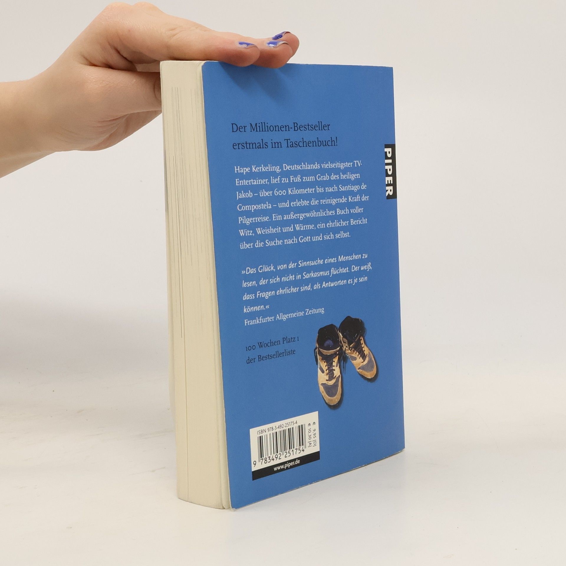 Hape Kerkeling, Deutschlands vielseitigster TV-Entertainer, lief zu Fuß zum Grab des heiligen Jakob – über 600 Kilometer durch Spanien bis nach Santiago de Compostela – und erlebte die reinigende Kraft der Pilgerreise. Ein außergewöhnliches Buch voller Witz, Weisheit und Wärme, ein ehrlicher Bericht über die Suche nach Gott und sich selbst und den unschätzbaren Wert des Wanderns.