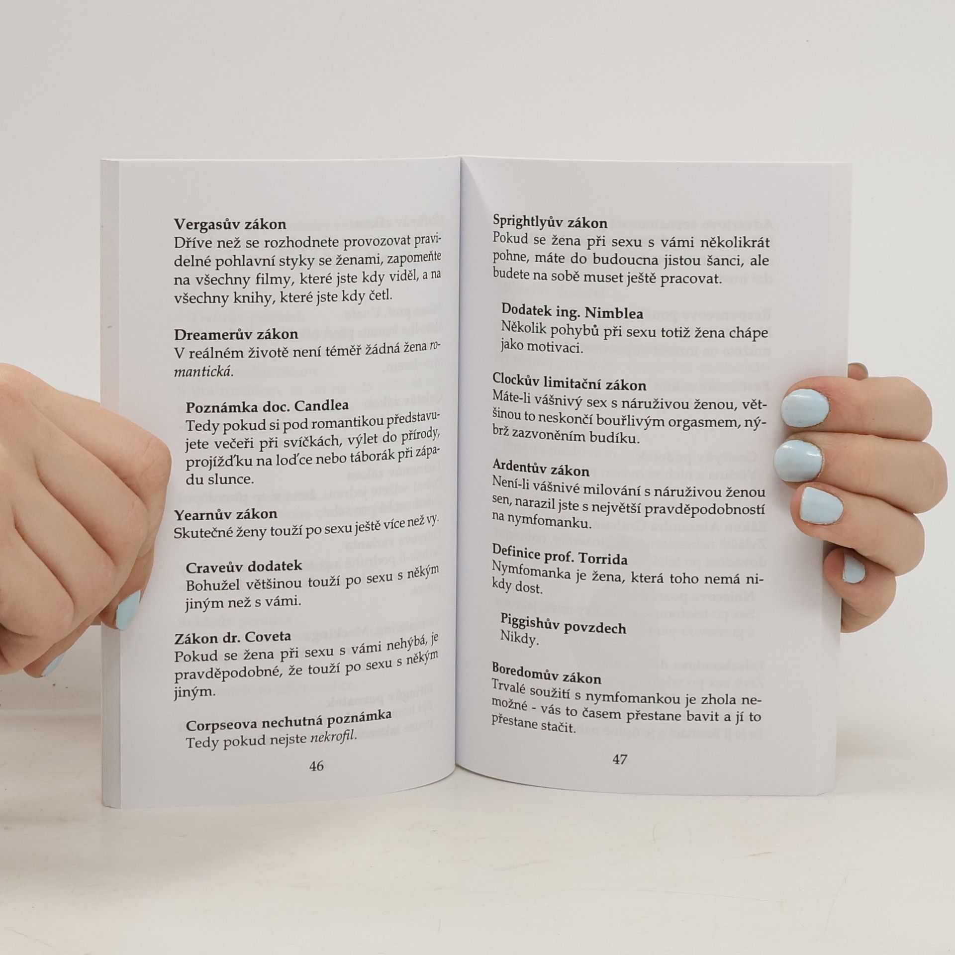 Říká se, že humor do postele nepatří. Jak hluboký je to omyl zjistíte už na první straně této knihy. Erotika je přímo zřídlem situací, které by se asi stávat neměly... což jim nebrání v tom, aby se děly prakticky neustále.
