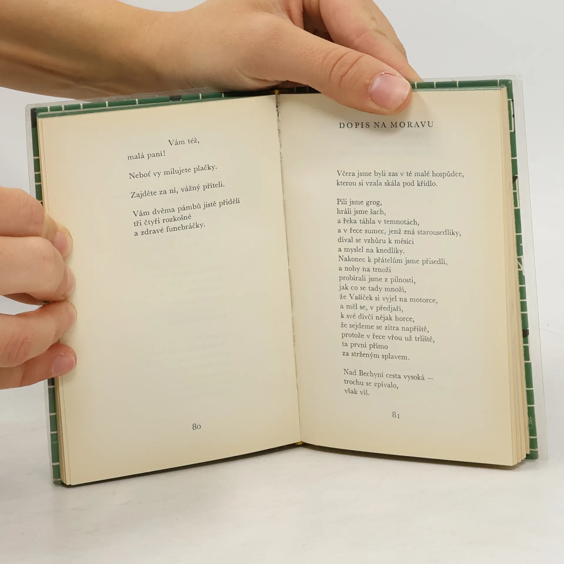 Moderní meditativní verše, v nichž se autor zamýšlí nad člověkem a jeho životním údělem, nad válkou, kterou tento člověk prošel (Strach se jmenoval helma / Strach se jmenoval zelené onuce / Strach byl muž / S velmi špičatou tužkou za stolkem ), verše, v nichž vyslovuje kritiku společnosti(Já vím, je ještě za horou ten čas, / kdy naše společnost lidská / přestane být společností / hlídací), a v nichž proti cizotě, nicotě, hrůze a samotě staví pozitivní lidský program (Chce se nám zpívat, / zpívat doopravdy, / a žít se nám chce, / žíti doopravdy, / a vědět proč nám hlava sedí na krku...)