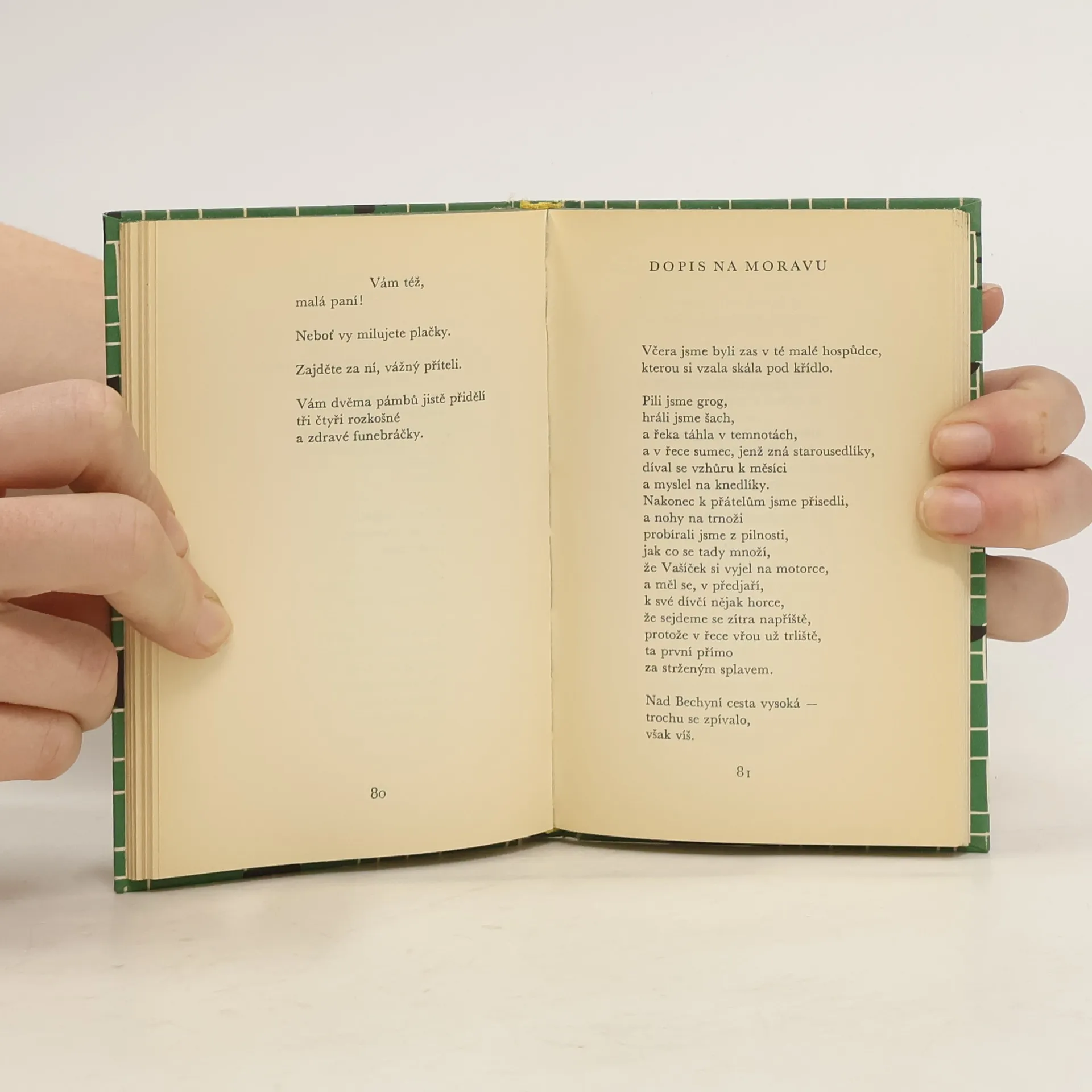 Moderní meditativní verše, v nichž se autor zamýšlí nad člověkem a jeho životním údělem, nad válkou, kterou tento člověk prošel (Strach se jmenoval helma / Strach se jmenoval zelené onuce / Strach byl muž / S velmi špičatou tužkou za stolkem ), verše, v nichž vyslovuje kritiku společnosti(Já vím, je ještě za horou ten čas, / kdy naše společnost lidská / přestane být společností / hlídací), a v nichž proti cizotě, nicotě, hrůze a samotě staví pozitivní lidský program (Chce se nám zpívat, / zpívat doopravdy, / a žít se nám chce, / žíti doopravdy, / a vědět proč nám hlava sedí na krku...)