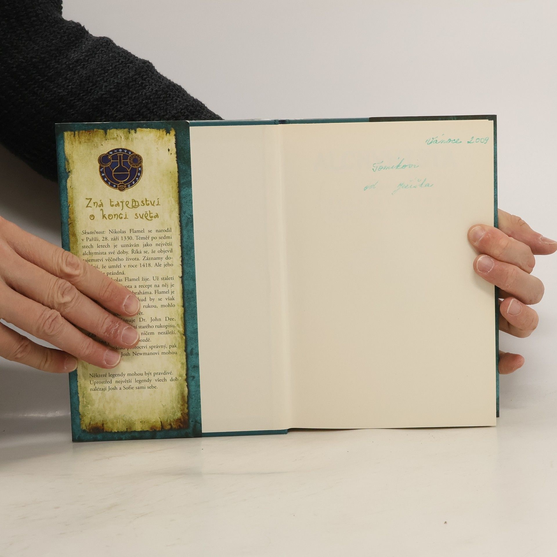Josh a Sophie jsou obyčejná dvojčata, která si chtějí během prázdnin vydělat na první auto. Josh si najde práci v malém knihkupectví u manželů Flemingových a jeho sestra v kavárně naproti přes ulici. Jednoho dne se jim změní celý život, když se v ulici objeví podivné auto s ještě podivnější posádkou. Jsou svědky kouzelnického souboje o starodávnou knihu kouzel, která má nevídanou moc. Obsahuje totiž všelijaké návody a postupy popisující mimo jiné výrobu zlata z běžných kovů nebo elixír mládí. Není divu, že po ní touží chamtivý Dr. Dee, který se spojil se starší nesmrtelnou rasou, jež zemi vládla dávno před příchodem lidí. Dee zaútočí na Nicka Fleminga, který ale není jen ledajakým obchodníkem, ale především strážce tajemství knihy kouzel a také alchymista v jedné osobě. Dvojčata se mu po počátečním šoku snaží pomoci ubránit knihu, ale je to marné. Dee si odnáší nejen to, pro co přišel, ale také unáší alchymistovu ženu Perenelu. Naštěstí Josh v boji vytrhne z knihy nejdůležitější část pro rituál, který by umožnil návrat nesmrtelných na zemi a tím uvrhl lidstvo do jejich otroctví, ne-li hůře. Dvojčata se tak dostávají do nebezpečí, protože Dee bude chtít získat i zbylé stránky a on nenechává svědky...