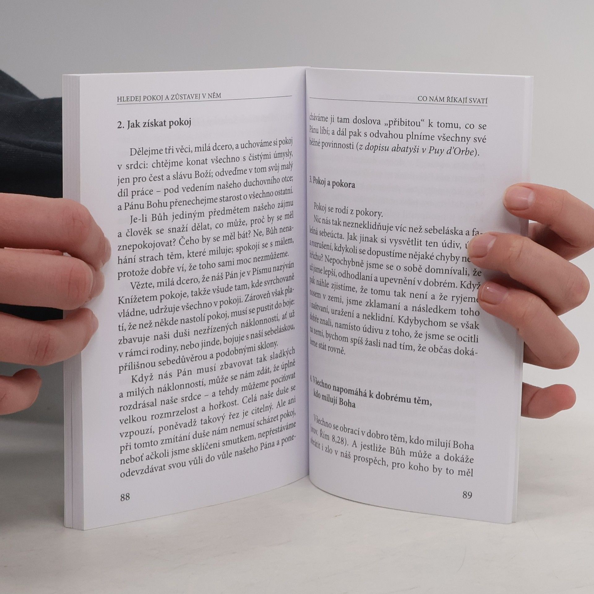 Bůh je Bohem pokoje. Vzpomeňme si na zkušenost proroka Eliáše: Bůh nebyl ani ve vichru, ani v zemětřesení, ani v ohni, ale „v tichém a jemném vánku“ (srov. 1 Král 19,12). Často se zneklidňujeme a chceme všechno vyřešit sami, ačkoli by bylo účinnější zůstat pokojně před Božím pohledem a nechat jej jednat, s moudrostí a mocí nekonečně větší, než je ta naše. „Neboť toto praví Panovník Hospodin, Svatý Izraele: ‚V obrácení a ztišení bude vaše spása, v klidu a důvěře vaše vítězství‘“ (Iz 30,15). Kniha vychází v novém překladu Kateřiny Lachmanové.