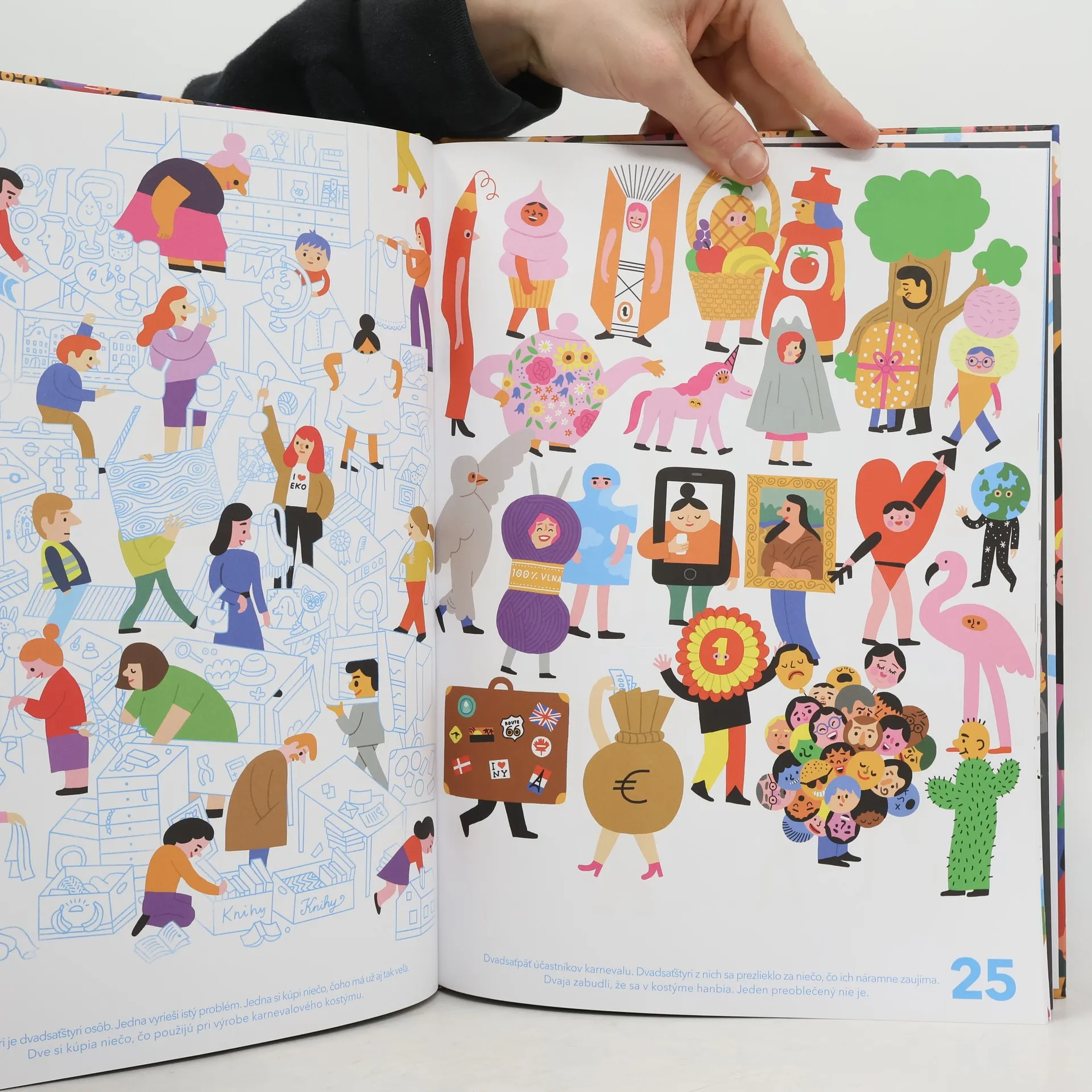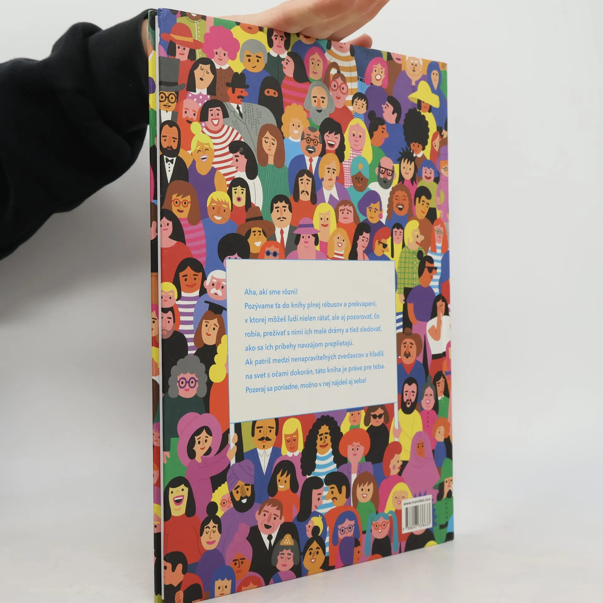 Nevonia ti matika? Nevadí! Počty sa predsa dajú naučiť aj inak. A ešte sa pri tom aj skvelo zabaviť! Pozývame ťa do knihy plnej rébusov a prekvapení, v ktorej môžeš ľudí nielen rátať, ale aj pozorovať, čo robia, prežívať s nimi ich malé drámy a tiež sledovať, ako sa ich príbehy navzájom preplietajú. Ak patríš medzi nenapraviteľných zvedavcov a hľadíš na svet s očami dokorán, táto kniha je práve pre teba. Pozeraj sa poriadne, možno v nej nájdeš aj seba!