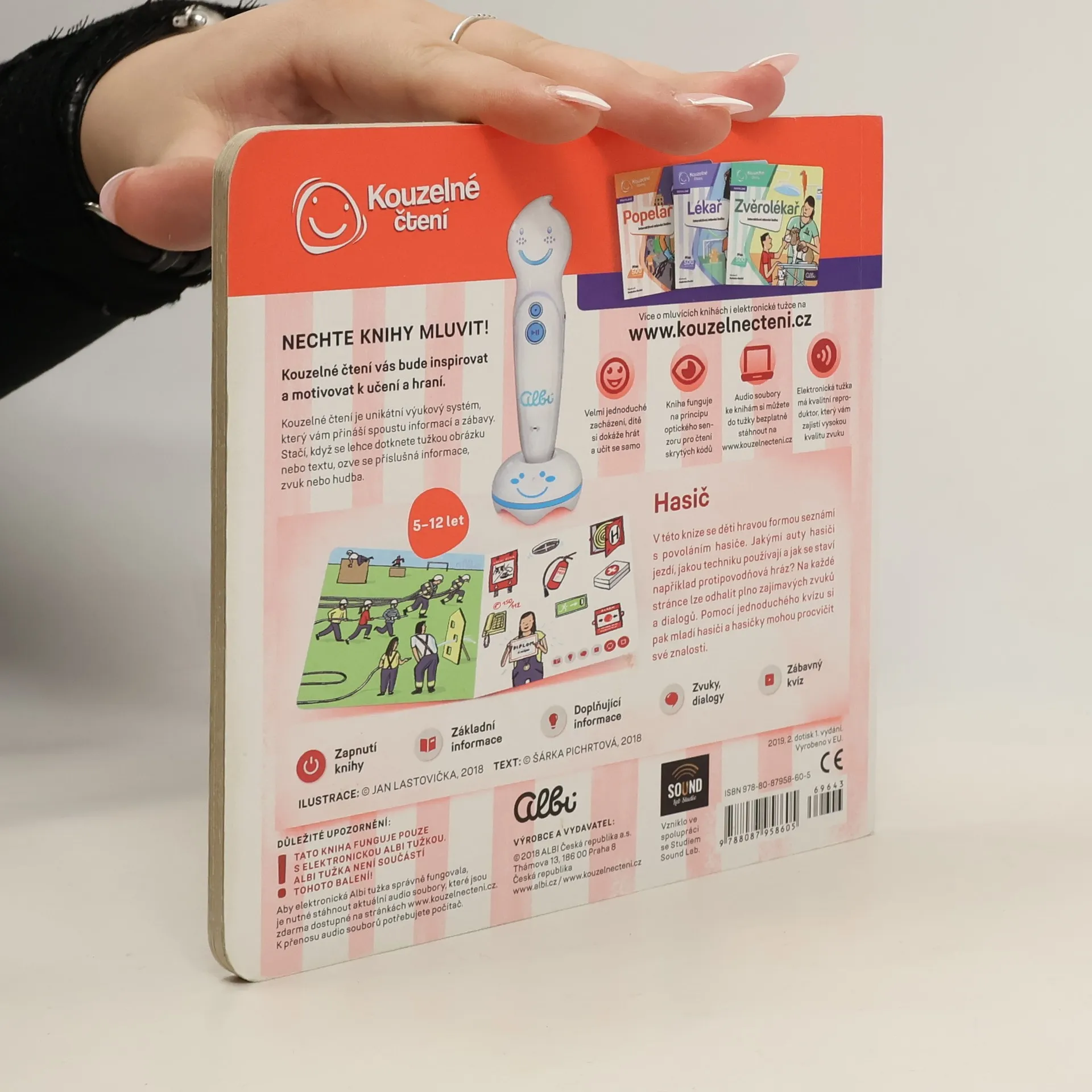 Interaktivní mluvící mini kniha Hasič seznámí děti od 5 let s povoláním hasiče. S Elektronickou Albi tužkou se seznámí s hasičskými vozy. Uvidí, jakou používají techniku a dozví se, jak se staví protipovodňová hráz. V knize na ně čeká přes 500 zvuků a textů. Nechybí jednoduchý kvíz, který procvičí získané znalosti.