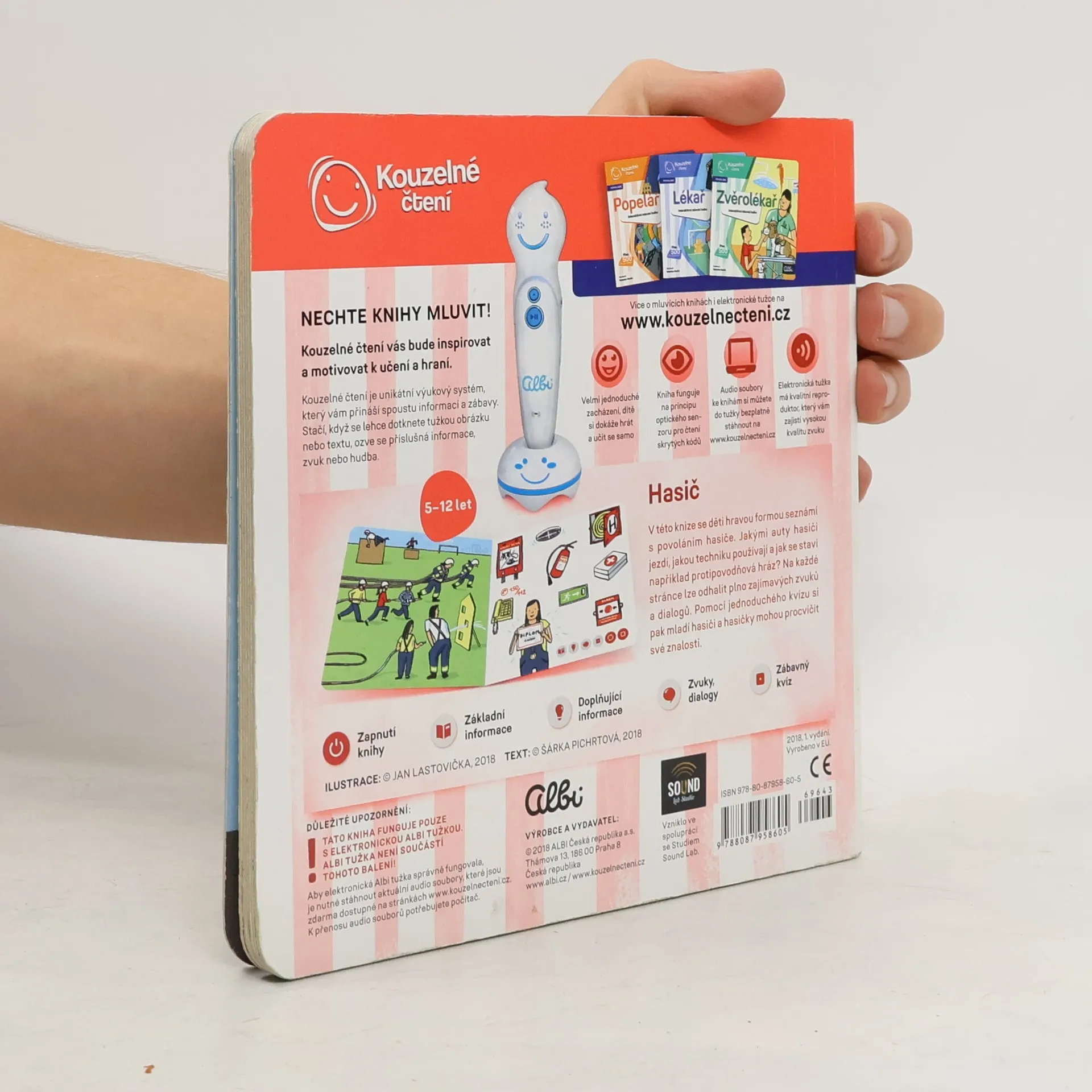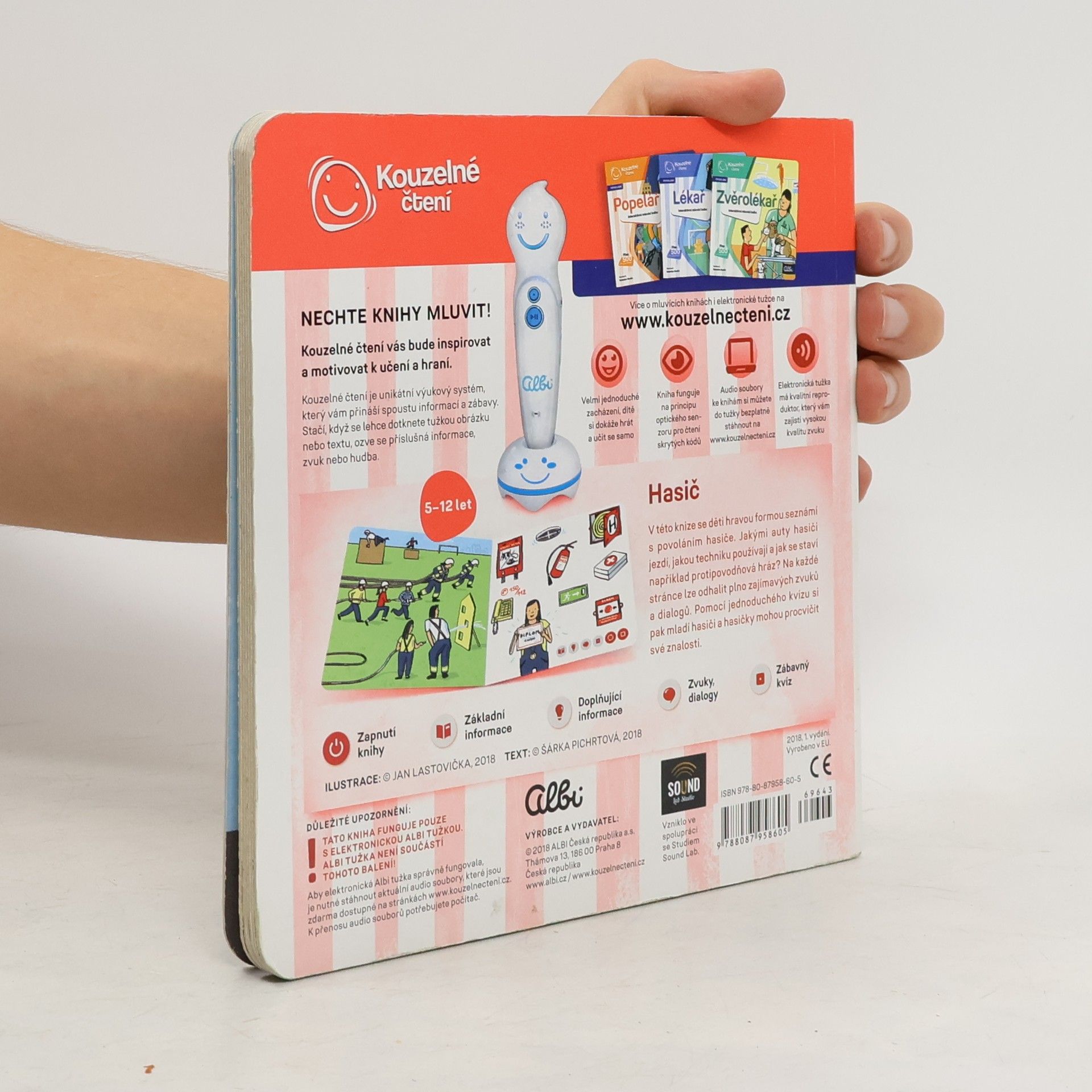Interaktivní mluvící mini kniha Hasič seznámí děti od 5 let s povoláním hasiče. S Elektronickou Albi tužkou se seznámí s hasičskými vozy. Uvidí, jakou používají techniku a dozví se, jak se staví protipovodňová hráz. V knize na ně čeká přes 500 zvuků a textů. Nechybí jednoduchý kvíz, který procvičí získané znalosti.
