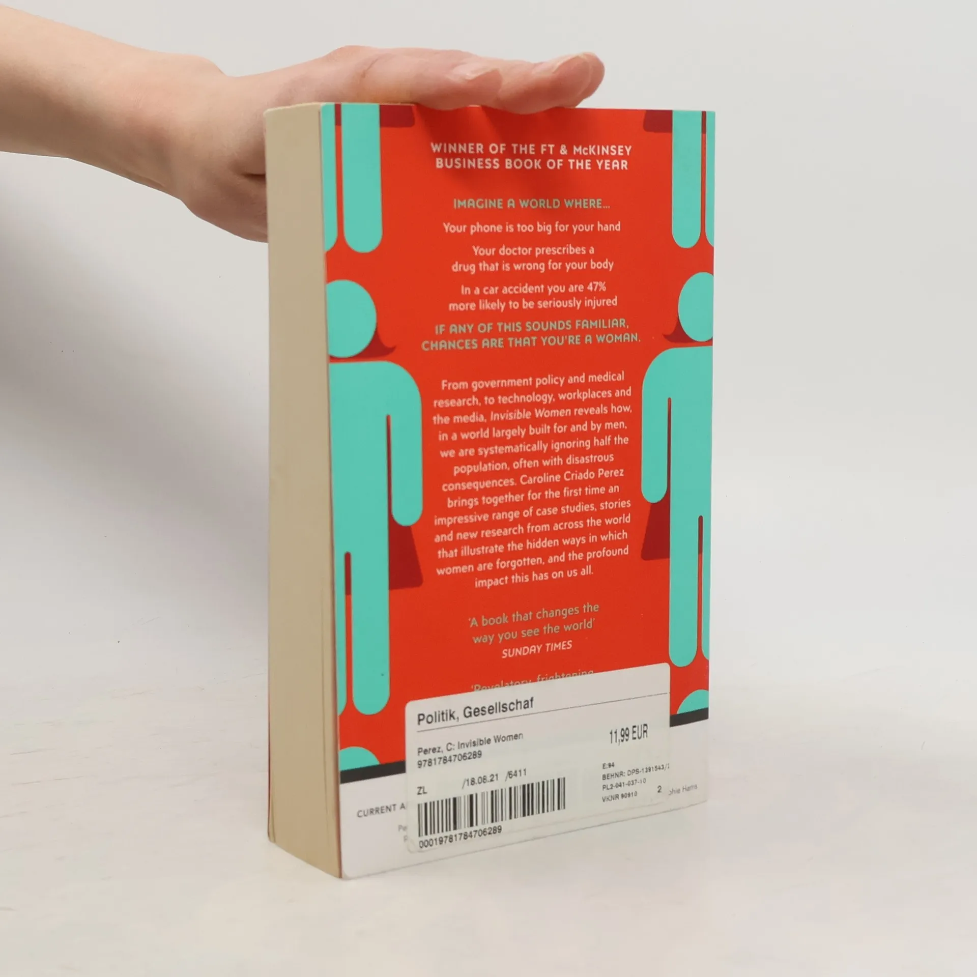 From government policy and medical research, to technology, workplaces, and the media, Invisible women reveals how in a world built for and by men, we are systematically ignoring half of the population, often with disastrous consequences. Caroline Criado Perez brings together for the first time an impressive range of case studies, stories and new research from across the world that illustrate the hidden ways in which women are forgotten, and the profound impact this has on us all.