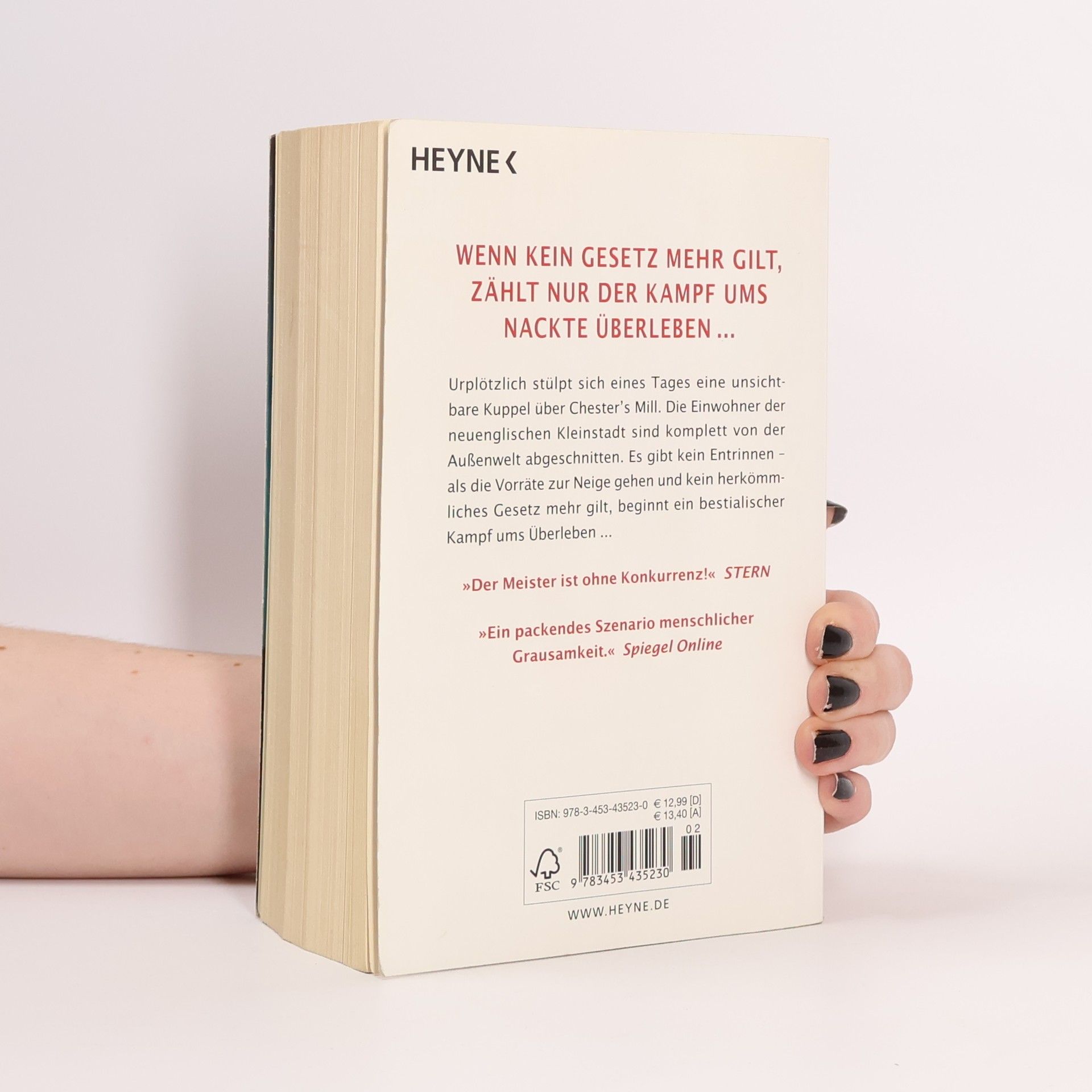 Wenn kein Gesetz mehr gilt, zählt nur der Kampf ums nackte Überleben... Mit „Die Arena” legt Stephen King ein faszinierendes neues Monumentalwerk vor – seinen umfangreichsten und fesselndsten Roman seit „The Stand – Das letzte Gefecht”. Urplötzlich stülpt sich eines Tages wie eine unsichtbare Kuppel ein undurchdringliches Kraftfeld über Chester’s Mill. Die Einwohner der neuenglischen Kleinstadt sind komplett von ihrer Umwelt abgeschnitten. Und auf einmal gilt kein herkömmliches Gesetz mehr ...