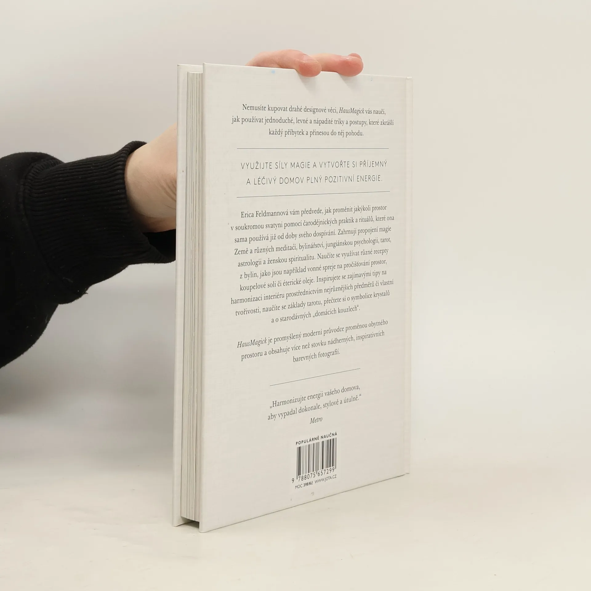 Využijte síly magie a vytvořte si příjemný a léčivý životní prostor s pomocí tohoto jedinečného ilustrovaného průvodce. Je to kniha pro každého, kdo si touží vybudovat krásný a pohodlný domov plný pozitivní energie. Nemusíte kupovat drahé designové věci, HausMagick vás naučí, jak používat jednoduché, levné a nápadité triky a postupy, které zkrášlí každý příbytek a přinesou do něj pohodu. Erica Feldmannová vám předvede, jak si můžete jakýkoli prostor proměnit na soukromou svatyni pomocí čarodějnických praktik a rituálů, které ona sama používá již od doby svého dospívání. Tyto praktiky zahrnují propojení magie Země a různých meditací, bylinářství, jungiánskou psychologii, tarot, astrologii, ženskou spiritualitu a přeměnu obytného prostoru v duchu všech těchto prvků. V knize se naučíte využívat různé recepty z bylin, jako jsou například vonné spreje na pročišťování prostor, koupelové soli či éterické oleje. Inspirujete se zajímavými tipy na harmonizaci interiéru prostřednictvím nejrůznějších předmětů či vlastní tvořivosti, naučíte se základy tarotu, seznámíte se se symbolikou krystalů a po generace předávanými „domácími kouzly“.