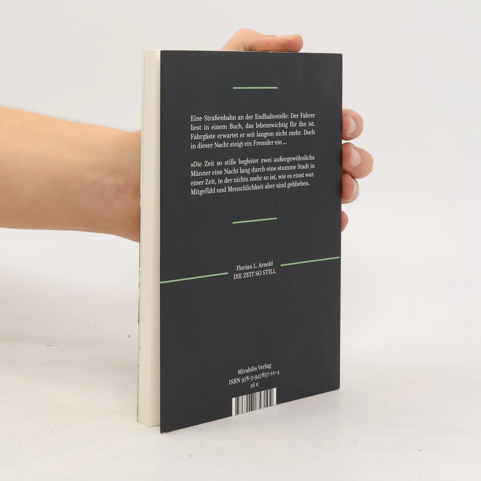 Eine Straßenbahn an der Endhaltestelle: Der Fahrer liest in einem Buch, das lebenswichtig für ihn ist. Fahrgäste erwartet er seit langem nicht mehr. Doch in dieser Nacht steigt ein Fremder ein ... »Die Zeit so still« begleitet zwei außergewöhnliche Männer eine Nacht lang durch eine stumme Stadt in einer Zeit, in der nichts mehr so ist, wie es einst war. Mitgefühl und Menschlichkeit aber sind geblieben.