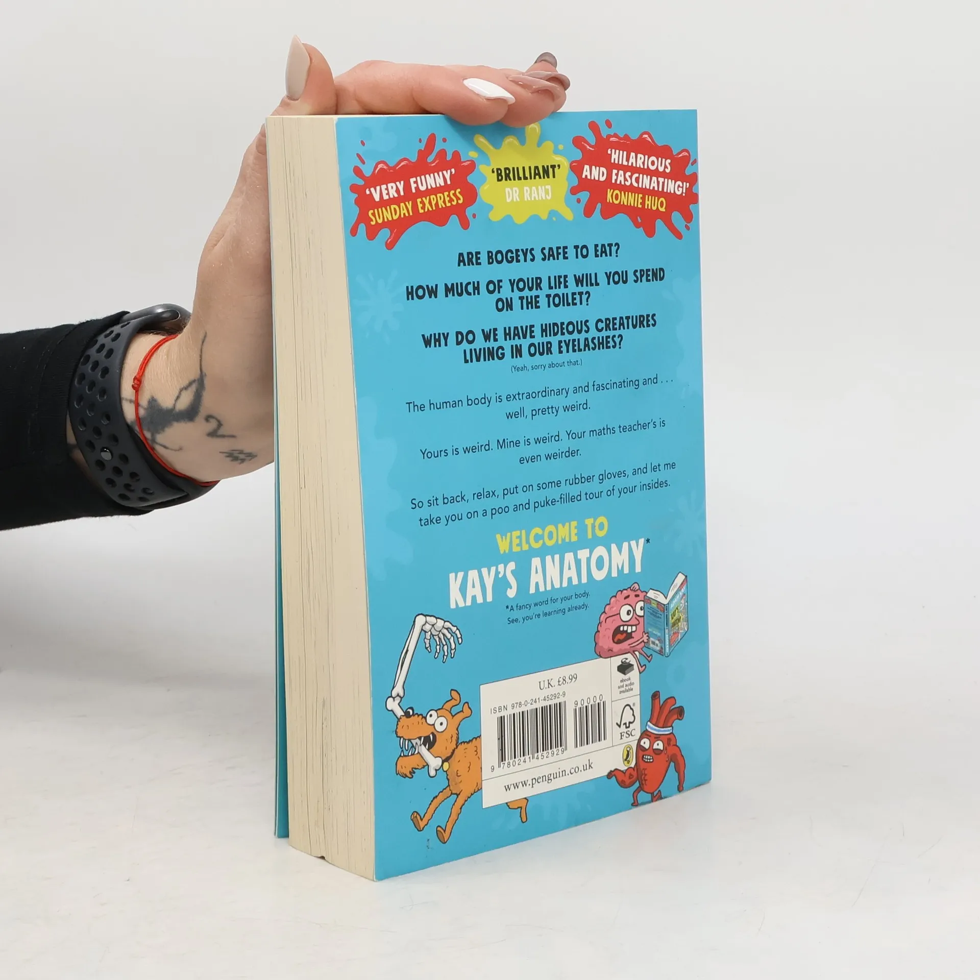 Do you ever think about your body and how it all works? Like really properly think about it? The human body is extraordinary and fascinating and, well... pretty weird. Yours is weird, mine is weird, your maths teacher's is even weirder. This book is going to tell you what's actually going on in there, and answer the really important questions, like- Are bogeys safe to eat? Look, if your nose is going to all that effort of creating a snack, the least we can do is check out its nutritional value. (Yes, they're safe. Chew away!) And . . . How much of your life will you spend on the toilet? About a year - so bring a good book. (I recommend this one.) So sit back, relax, put on some rubber gloves, and let a doctor take you on a poo- and puke-filled tour of your insides. Welcome to Kay's Anatomy*. *a fancy word for your body. See, you're learning already.