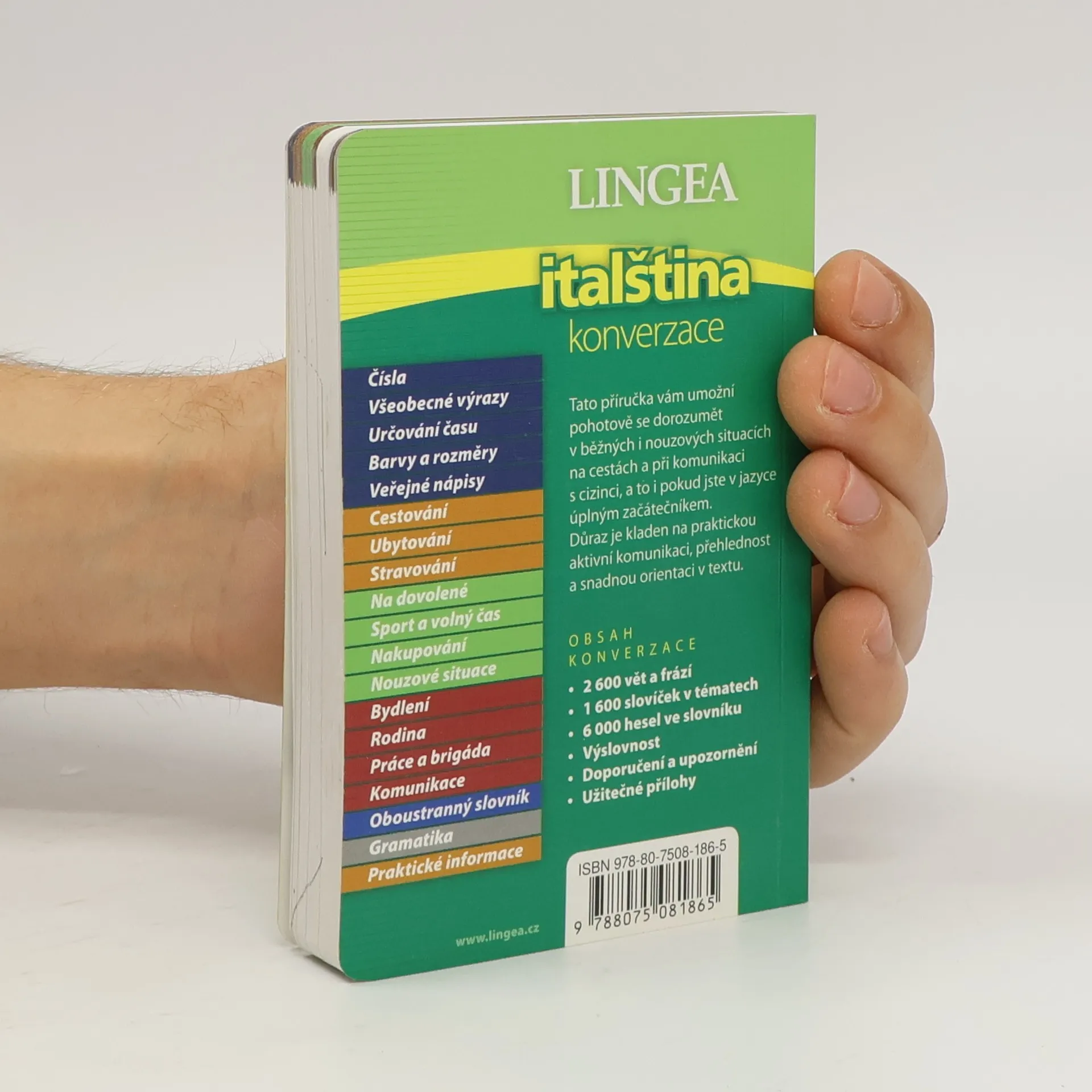 Unikátní konverzace se slovníkem a gramatikou. Přehledné členění do tematických bloků umožňuje rychlou orientaci v textu, současně usnadňuje i dorozumění se v běžných i nouzových situacích na cestách a při komunikaci s cizinci, a to i úplným začátečníkům. Důraz je kladen na praktickou aktivní komunikaci, přehlednost a snadnou orientaci v textu. Obsahuje šestnáct tematických oddílů. U všech uvedených vět a frází je doplněna výslovnost. Součástí této příručky je také slovník a stručný přehled gramatiky. Důležité informace o zemích s tipy na návštěvu zajímavých míst a památek i užitečnými postřehy a doporučeními najdete v kapitole Praktické informace a v krátkých poznámkách u jednotlivých oddílů. Obálka je doplněna orientačními mapkami.