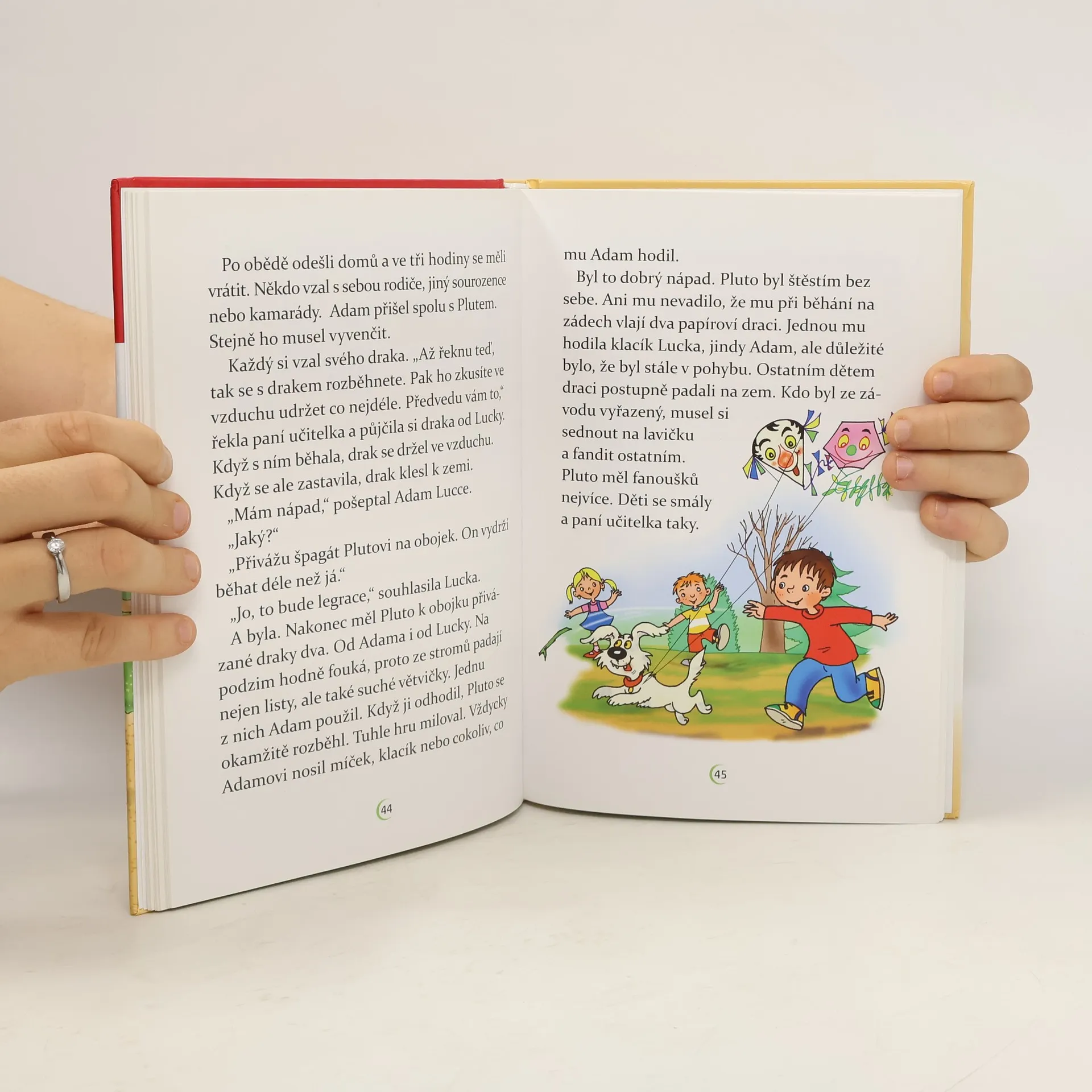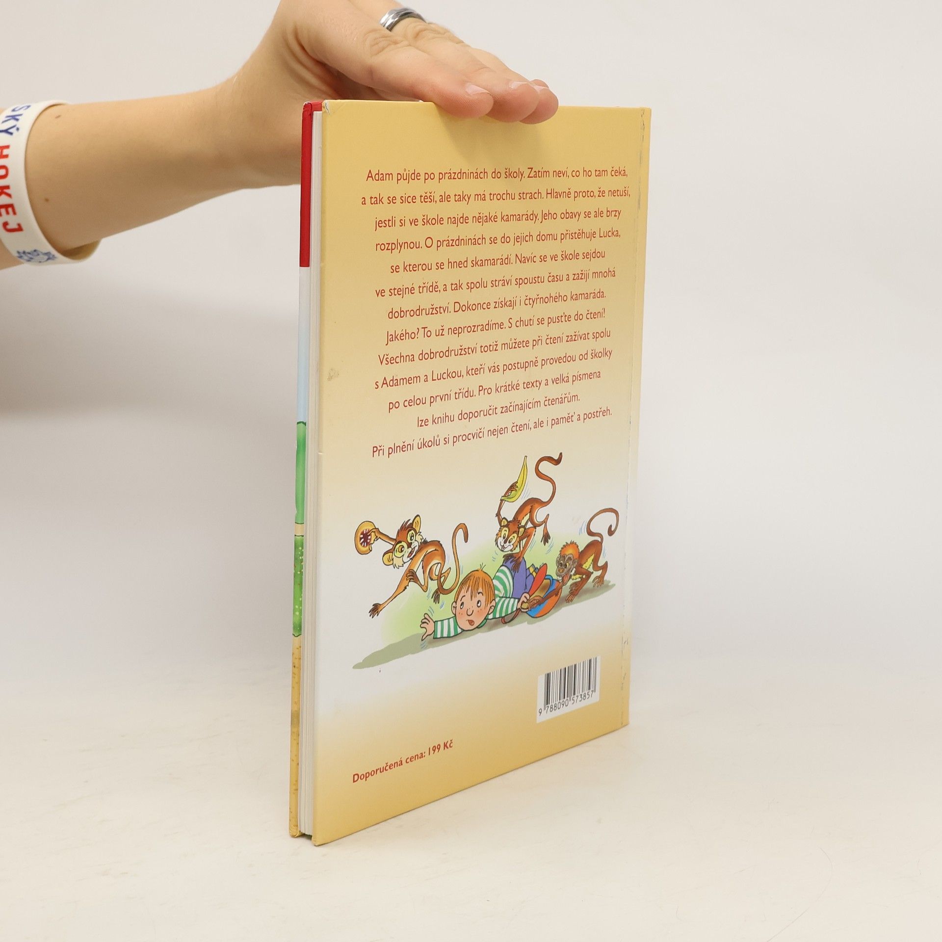 Adam půjde po prázdninách do školy. Zatím neví, co ho tam čeká, a tak se sice těší, ale taky má trochu strach. Hlavně proto, že netuší, jestli si ve škole najde nějaké kamarády. Jeho obavy se ale brzy rozplynou. O prázdninách se do jejich domu přistěhuje Lucka, se kterou se hned skamarádí. Navíc se ve škole sejdou ve stejné třídě, a tak spolu stráví spoustu času a zažijí mnohá dobrodružství. Dokonce získají i čtyřnohého kamaráda. Jakého? To už neprozradíme. S chutí se pusťte do čtení! Všechna dobrodružství totiž můžete při čtení zažívat spolu s Adamem a Luckou, kteří vás postupně provedou od školky po celou první třídu. Pro krátké texty a velká písmena lze knihu doporučit začínajícím čtenářům. Při plnění úkolů si procvičí nejen čtení, ale i paměť a postřeh
