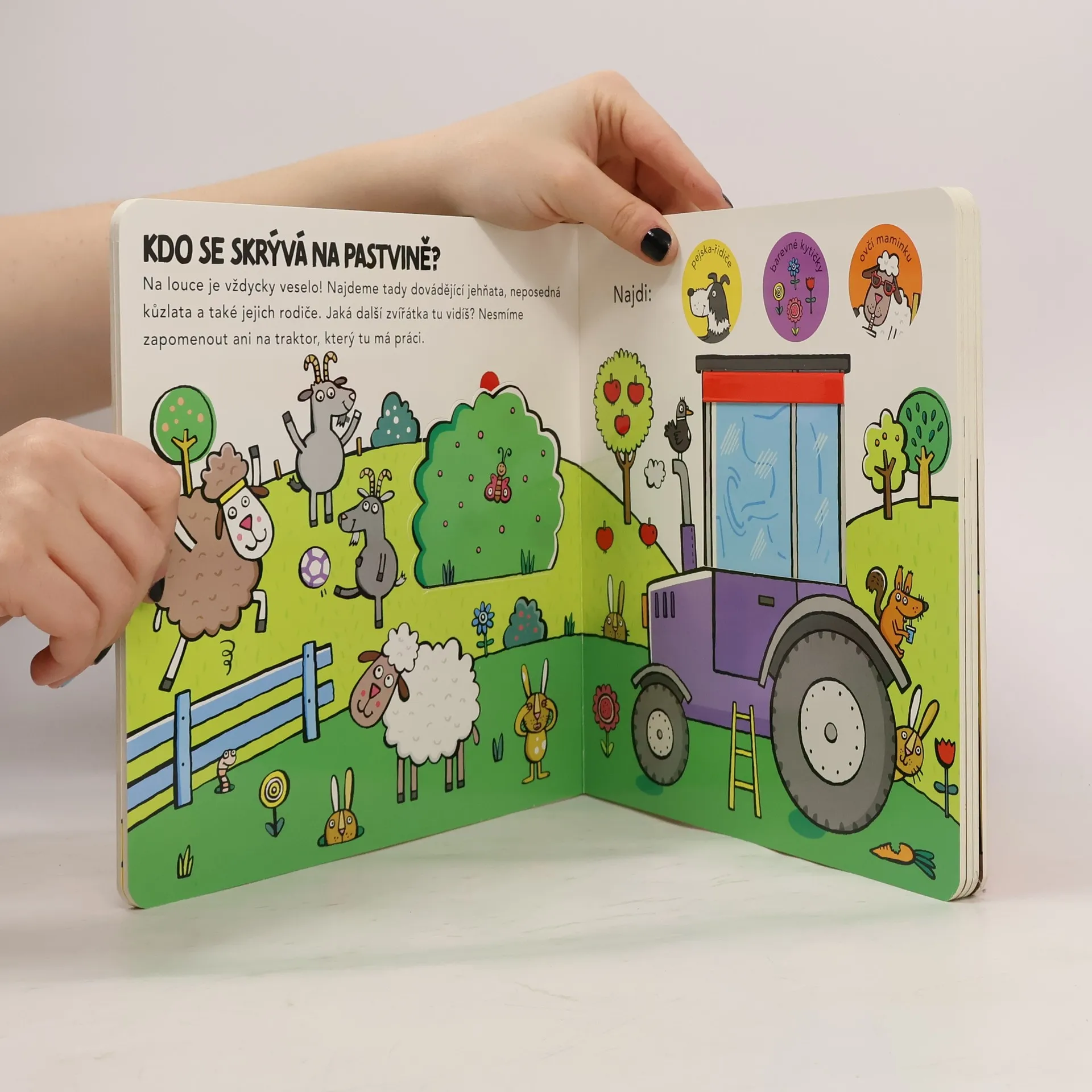 Knížka s otvíracími a posuvnými okénky přibližuje malým dětem život na dvorku, na zahrádce, na poli. Oblíbený formát leporela s okénky a posuvnými dvířky poskytuje malým čtenářům chytrou zábavu a zároveň utváří jejich představu o tom, jak to vypadá na hospodářském dvoře a co všechno se tam může dít. Práce s takovouto knihou přispívá rovněž ke zlepšování koordinace ruka - oko. Nakladatelská anotace. Kráceno.